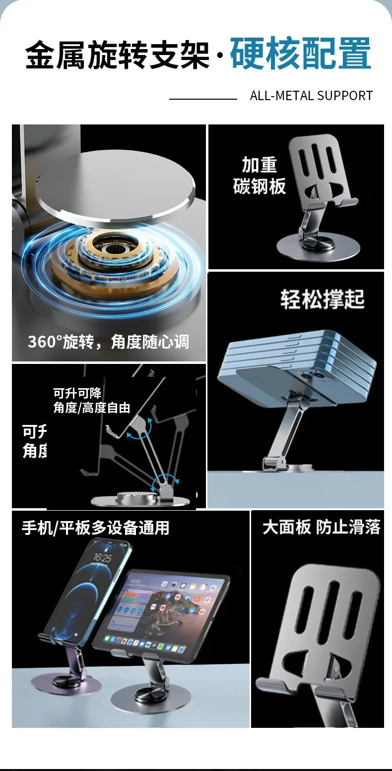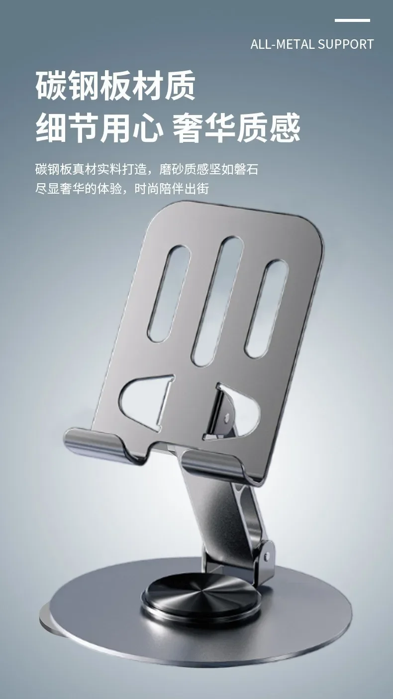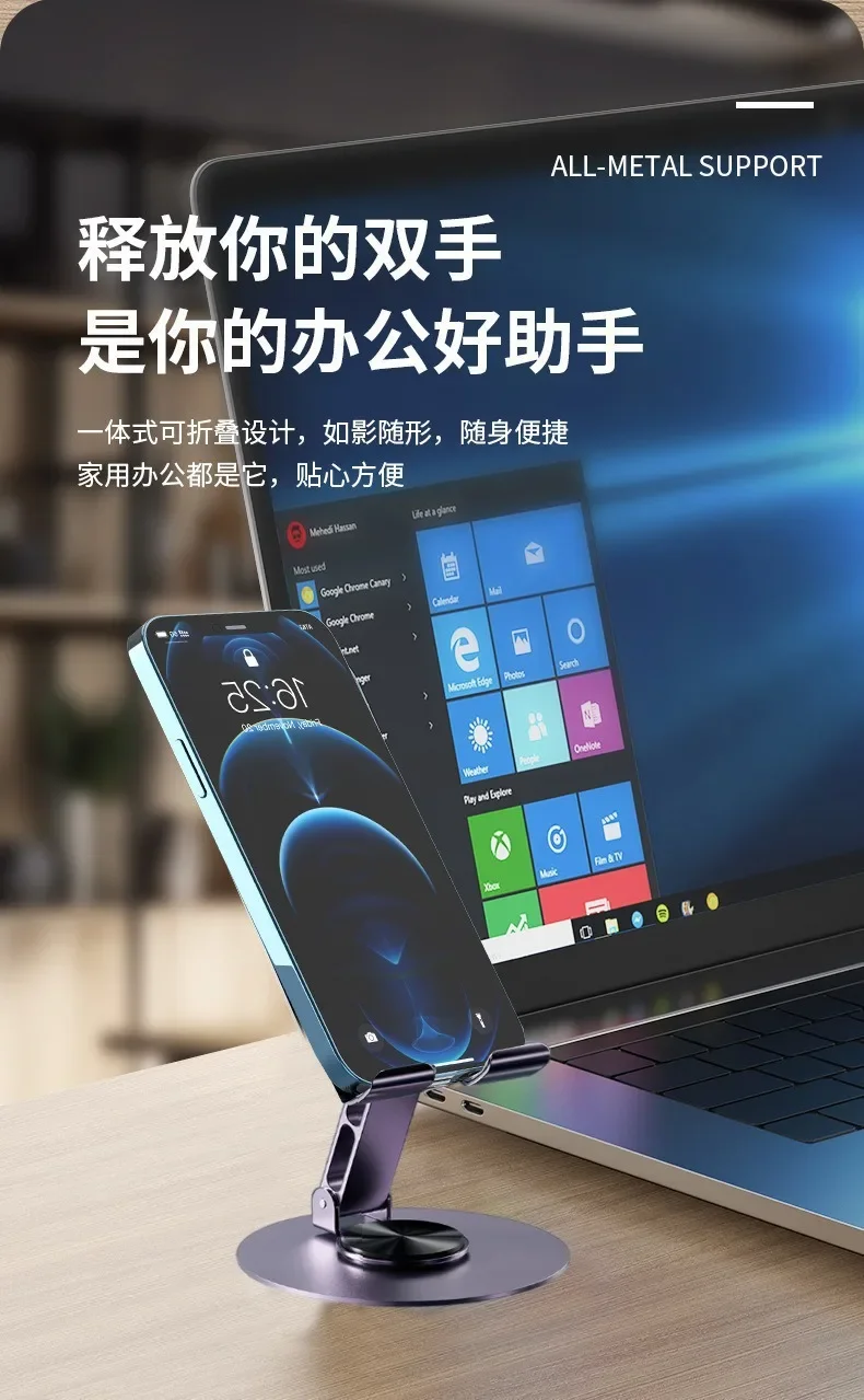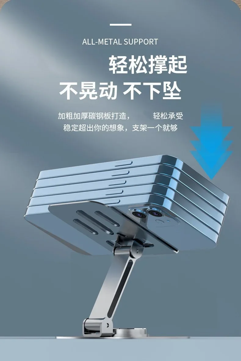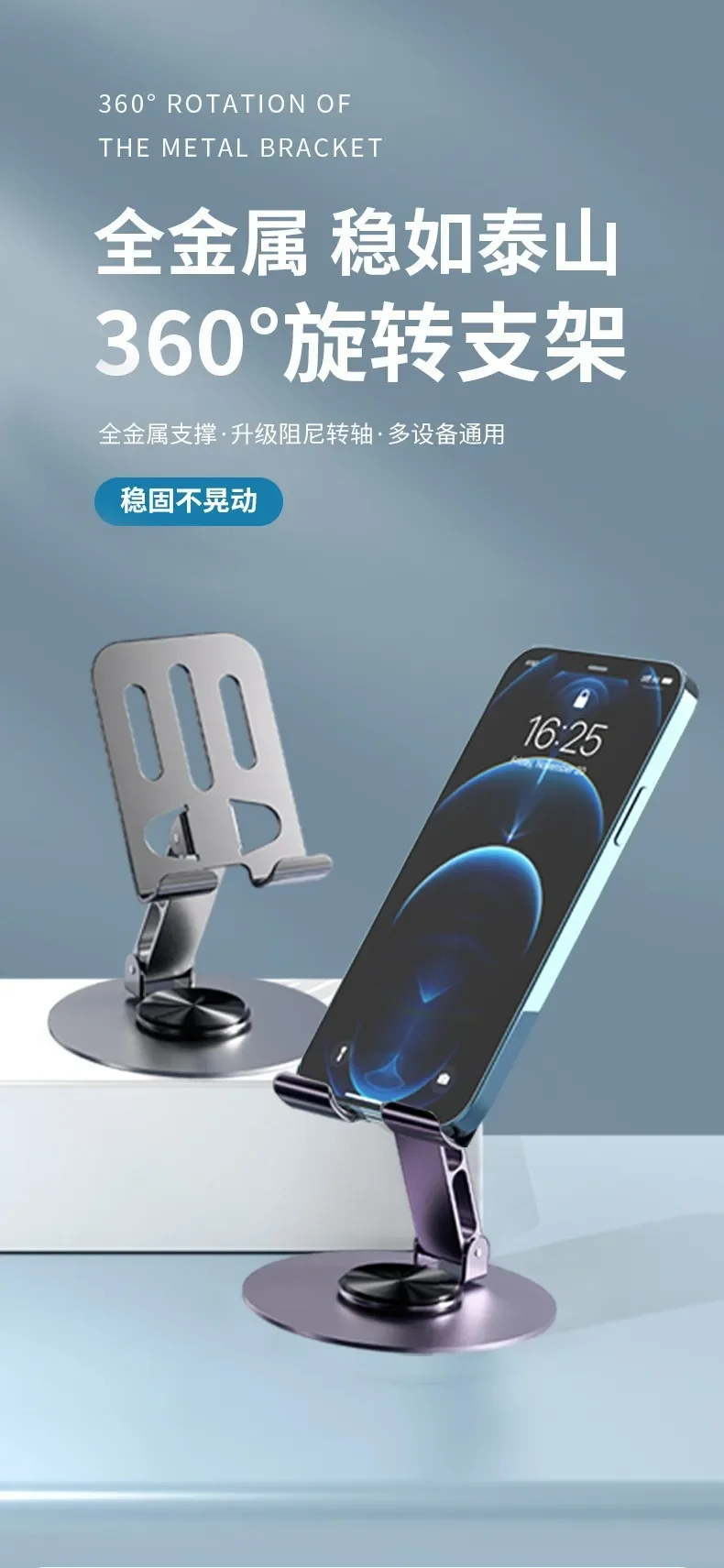 Universal All-Metal Aluminum 360° Rotating Mobile Phone Holder - Folding Double Shaft Design, Stable Anti-Slip Bracket