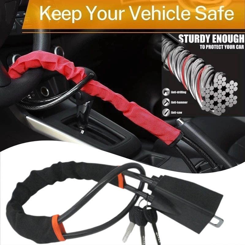 Steering wheel lock is Adjustable,Universal. (For Cars, Pickups, SUVs, Vans, Trucks, and etc.)