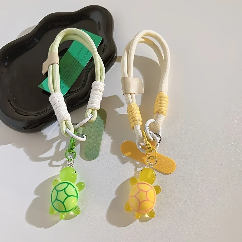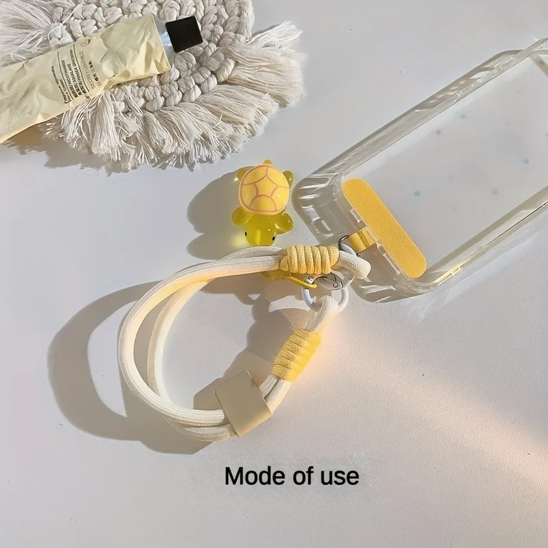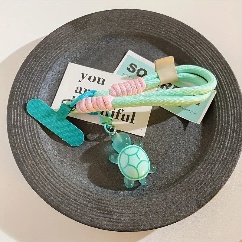 Universal Braided Mobile Phone Lanyard Strap Cartoon Turtle Hanging Chain Ring Cord with Patch Wrist Strap Cell Phone Detachable