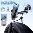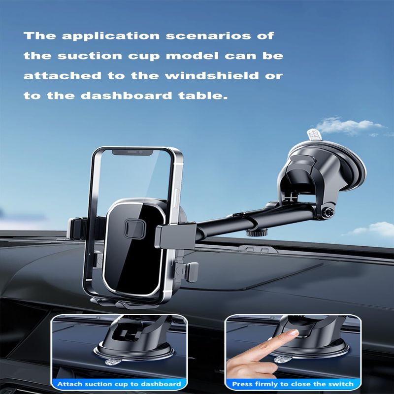 【Design Innovation】 Universal car phone clip holder has rubber pads to protect the phone, weight-sensitive locking phone, safe and not easy to fall off, can be rotated left and right to adjust the best viewing angle. Suction cup universal car phone clip holder has retractable, can perform up to 20cm, nano suction cups are water resistant and can be recycled.