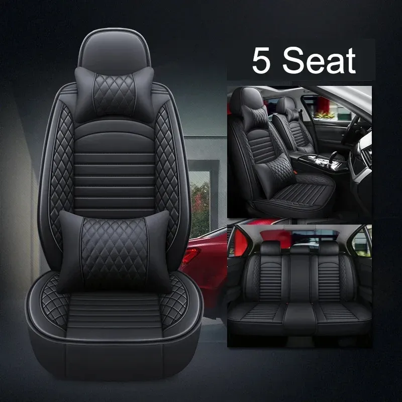 A: Universal 5-seat style, suitable for most 5-seat cars. Front row full coverage style (side stretch cloth design), rear row universal style (not full coverage)
