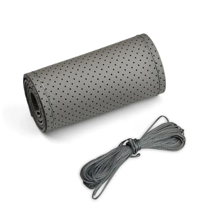 Universal Leather Car Steering Wheel Stitch On Wrap Cover Fit for 38cm 14" DIY Sewing Breathable and Anti Slip Black Grey Beige