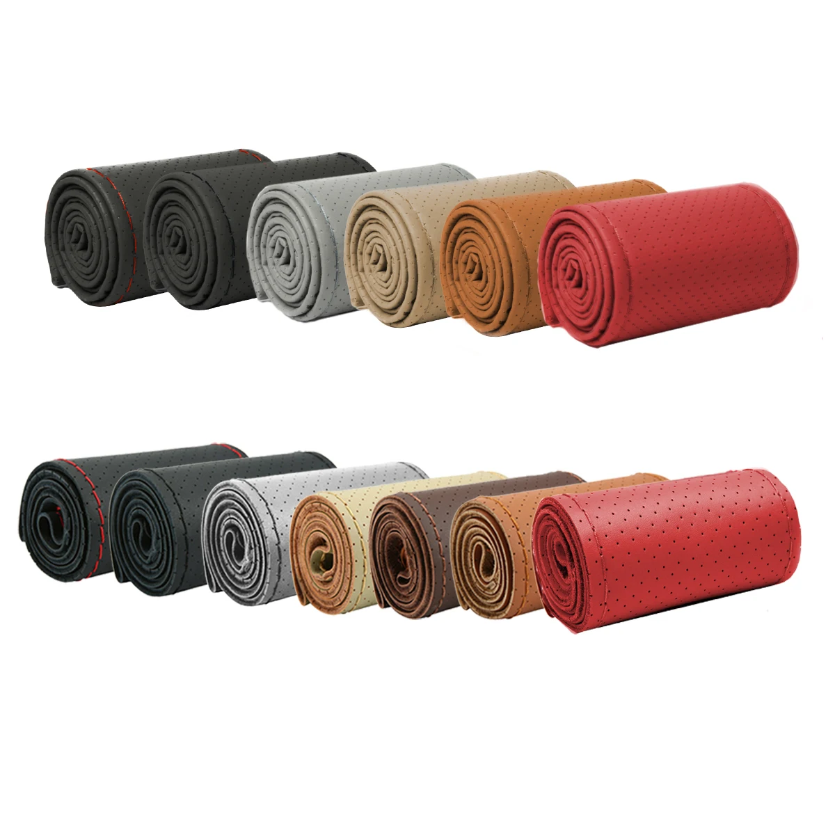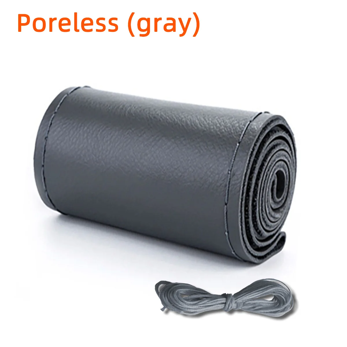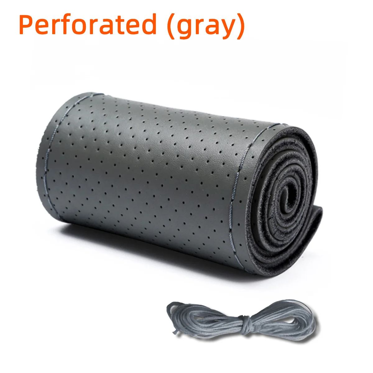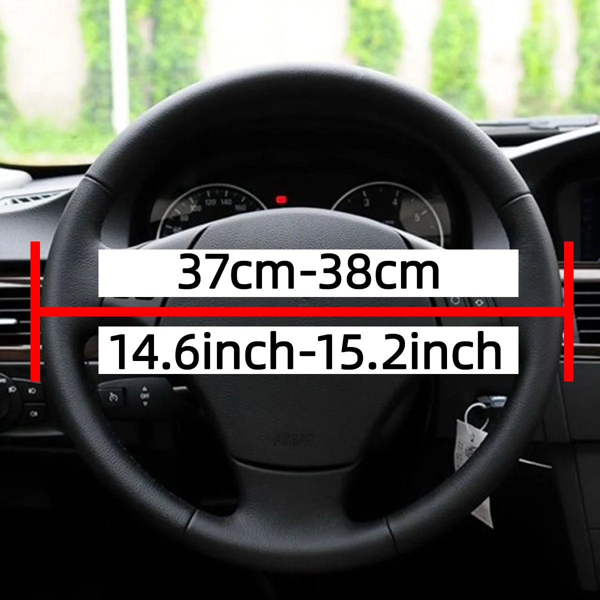 Universal Leather Car Steering Wheel Stitch On Wrap Cover Fit for 38cm 14" DIY Sewing Breathable and Anti Slip Black Grey Beige