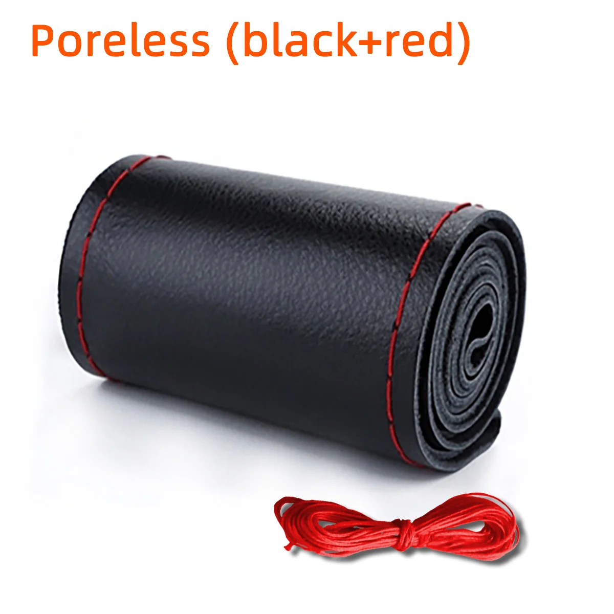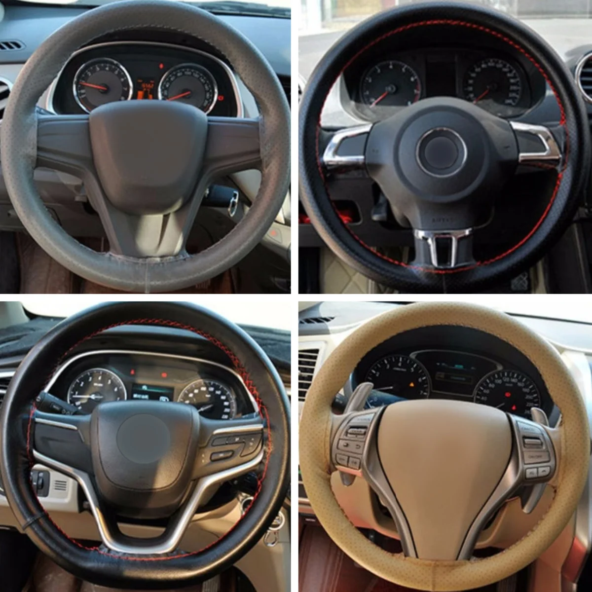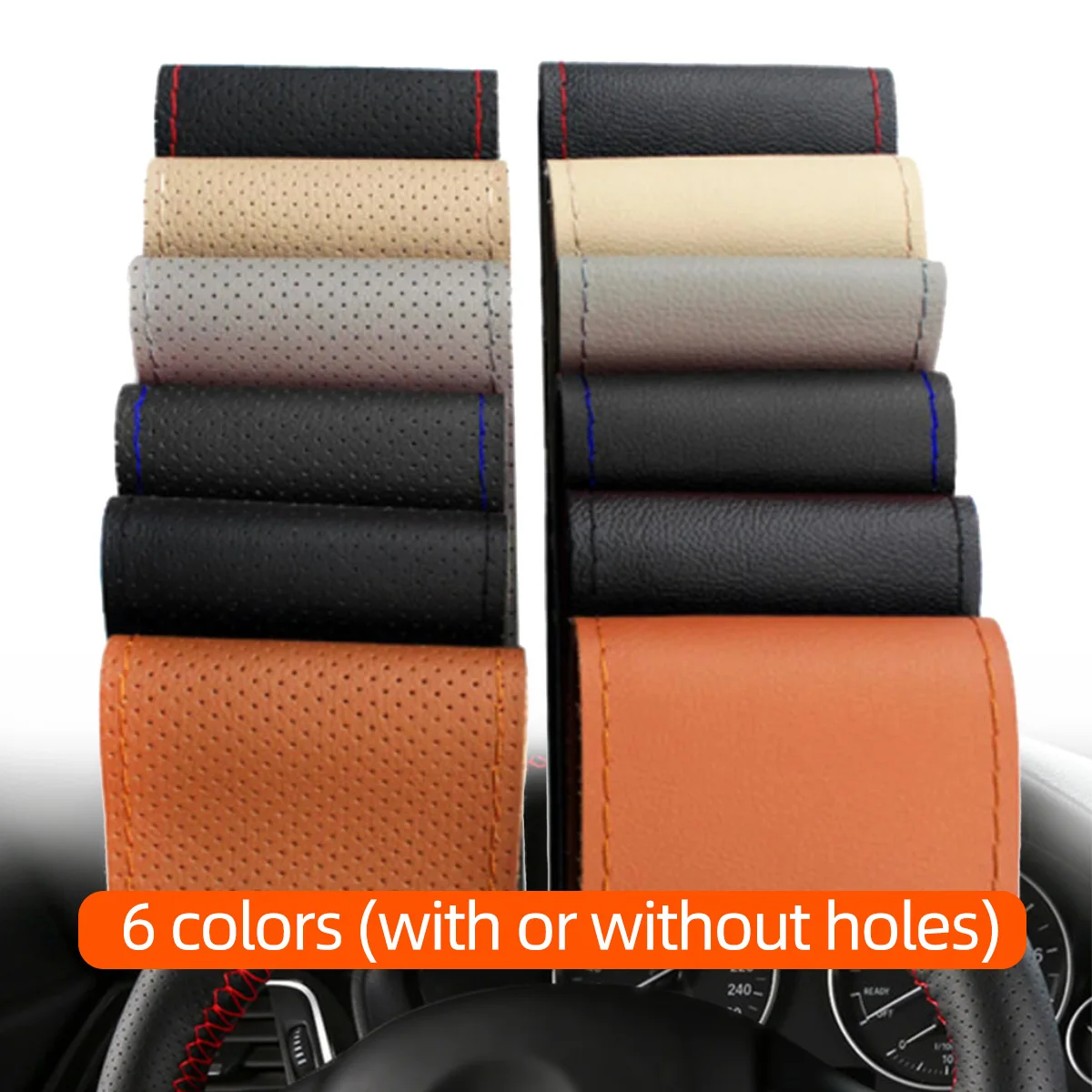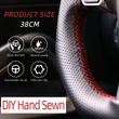 Universal Leather Car Steering Wheel Stitch On Wrap Cover Fit for 38cm 14" DIY Sewing Breathable and Anti Slip Black Grey Beige