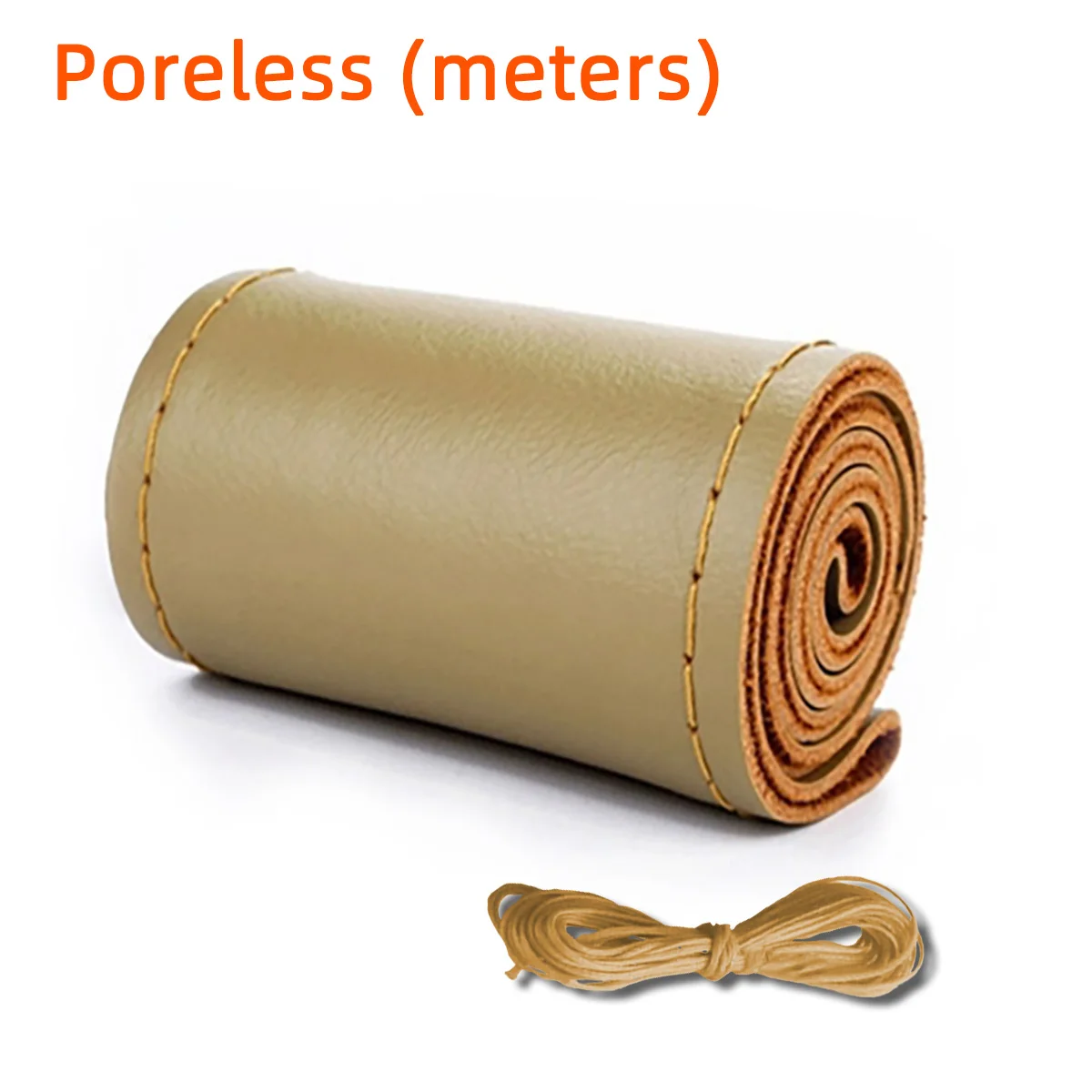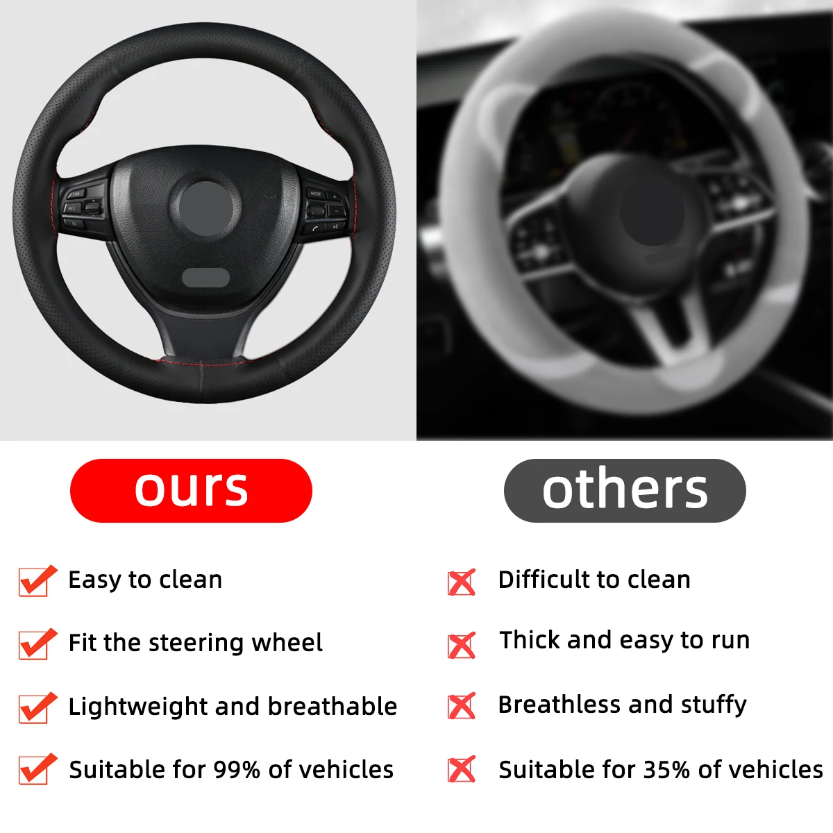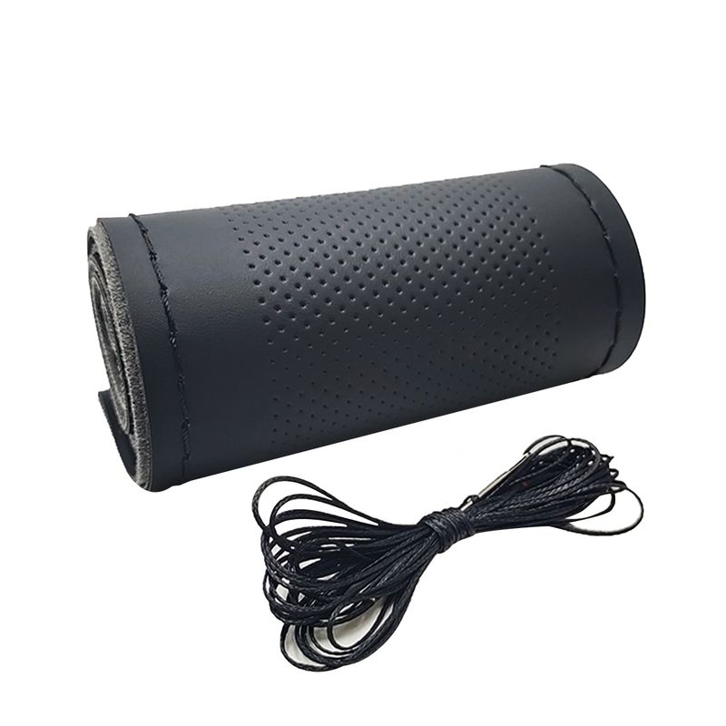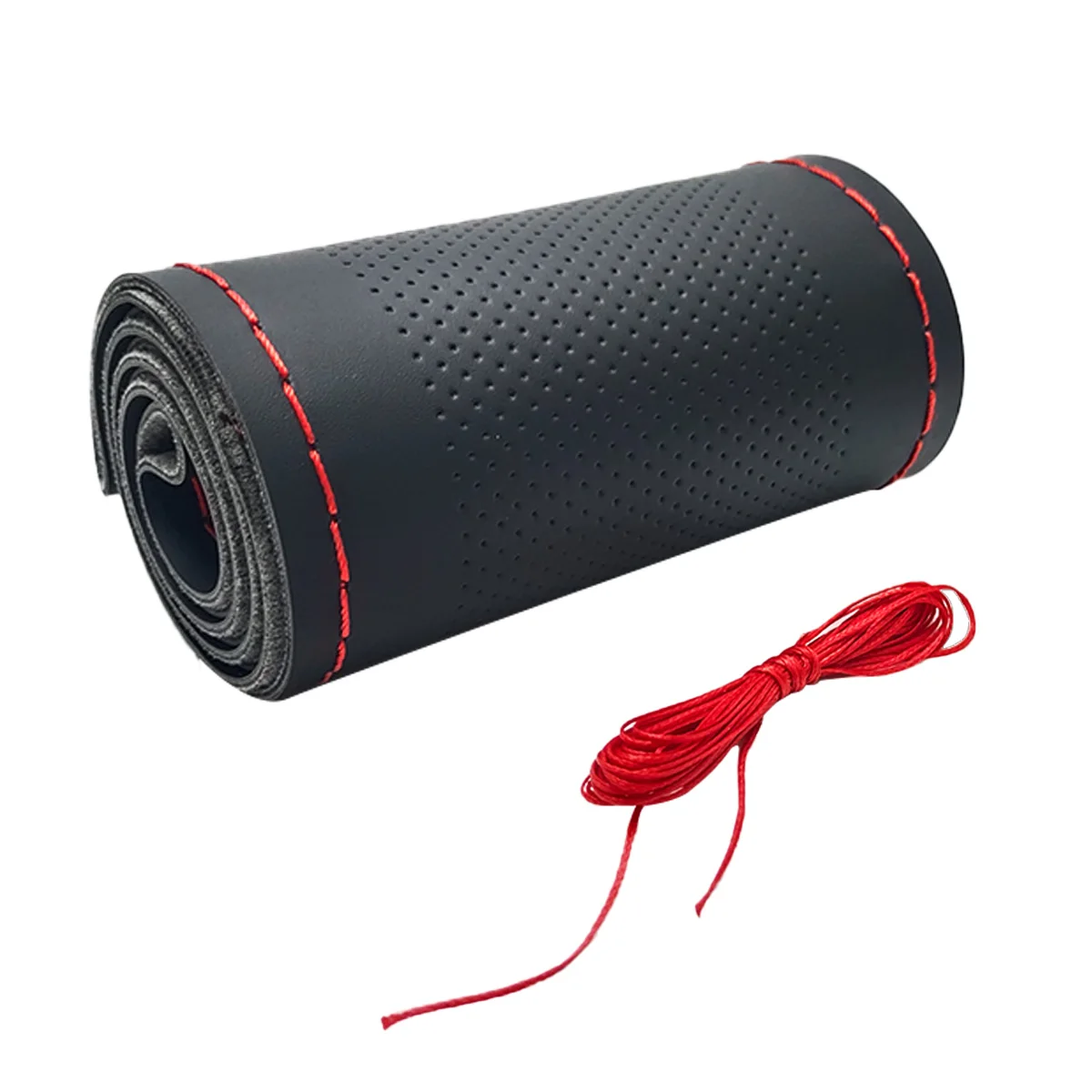 Universal Leather Car Steering Wheel Stitch On Wrap Cover Fit for 38cm 14" DIY Sewing Breathable and Anti Slip Black Grey Beige