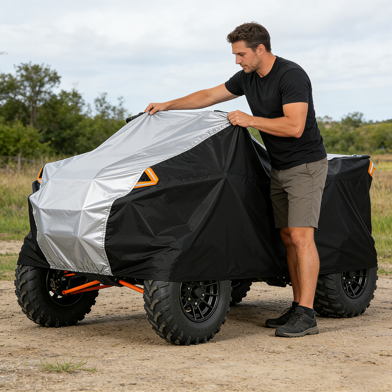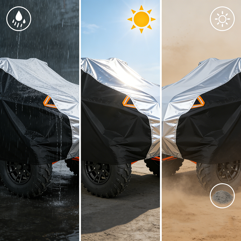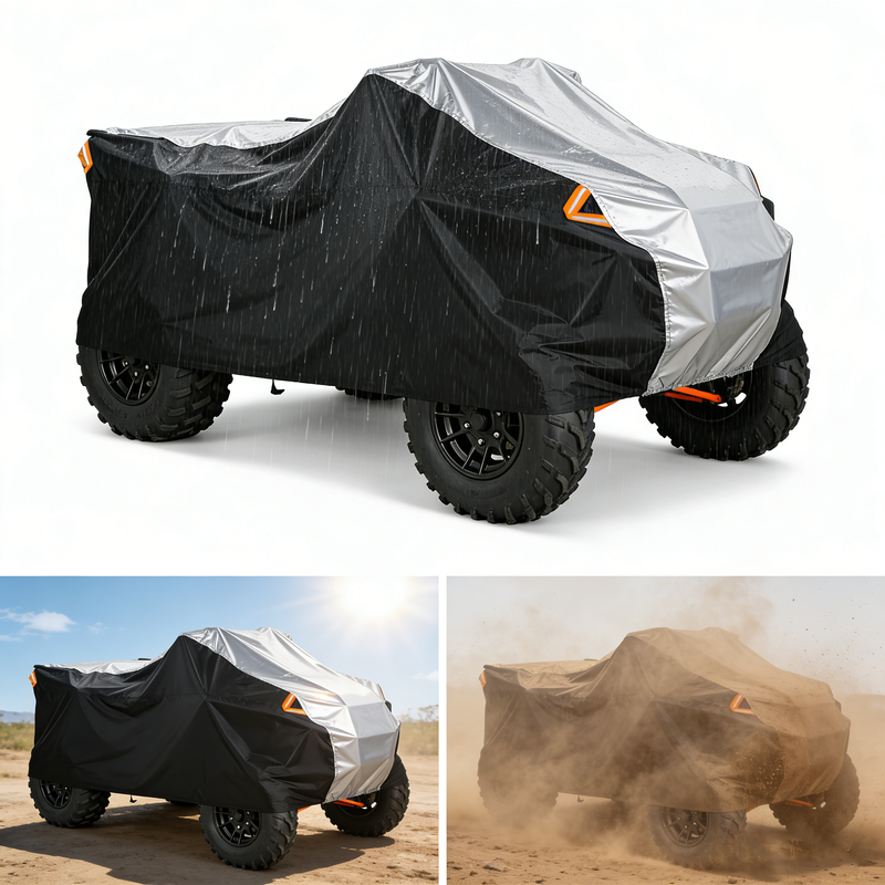 Built-in elastic bottom hem ensures a snug fit around the ATV’s body, preventing wind lift and blocking dust/rain entry.