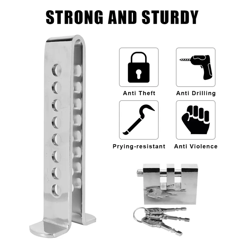 Universal Stainless Steel Car Anti-Theft Lock - 8/9 Holes, Fits Clutch/Brake/Throttle & Steering Wheel, Secure Most Vehicles