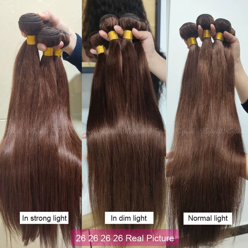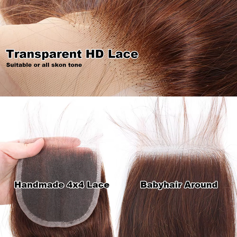 Unprocessed Brazilian Straight Human Hair Bundles with Closure HD 4x4 13x4 Chocolate Brown 100% Raw Remy Hair Weave Extensions