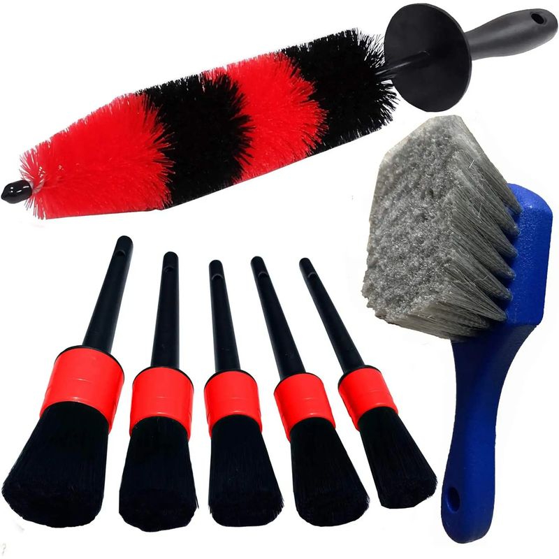 Car Detailing Brush Set: 5pcs different brush sizes, you can choose any one to suit your needs, soft and long enough to easily reach into the lug nuts, narrow or tight space. Ideal for both interior and exterior detailing.