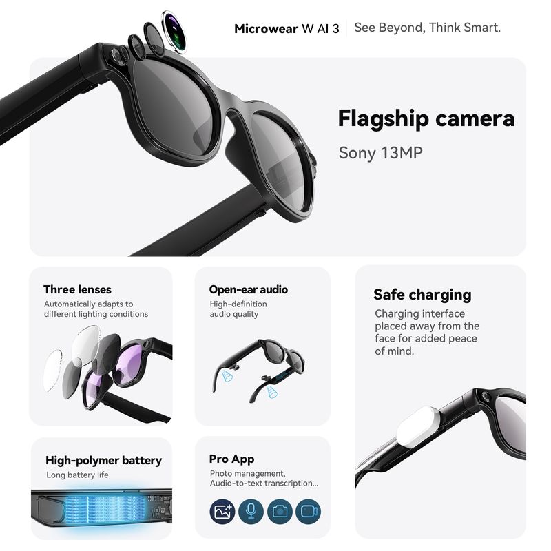 Upgrade 4K AI Smart Photochromic Glasses 13MP Pixel Camera Bluetooth Call Voice Music Player Translate Sunglasses Men Women