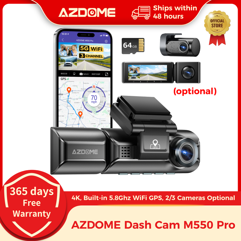 AZDOME M550 Pro dash cam new design with UHD 4K Record 5.8Ghz WiFi and GPS Tracking.