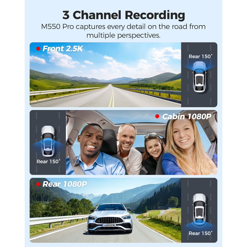 3 Channel Dash Cam for Car