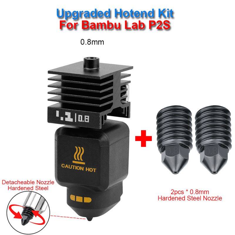 Upgraded Hotend Kit For Bambu Lab P2S 0.2/0.4/0.6/0.8mm Detachable Nozzle Hot End For Bambulab P2S 3D Printer Replacement Part
