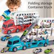 Upgraded Large Ejection Mini Slide Alloy Container Car Engineering Car Multi-Layer Can Receive Blue Racing Car With 6 Qcar