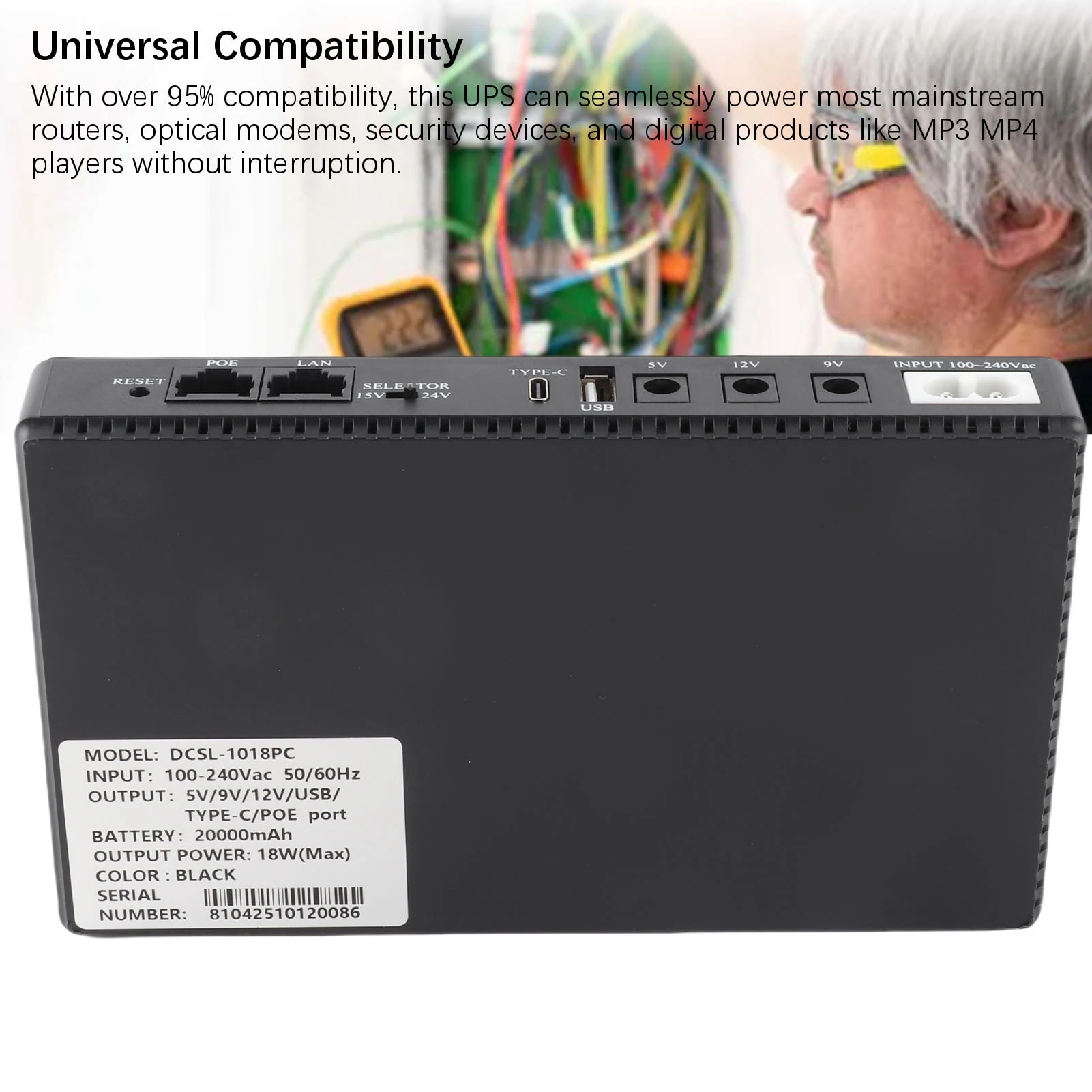 1. Comprehensive Safety: Equipped with overcharge, over discharge, over current, overload, over temperature, and short circuit safety, this UPS ensures complete safety for your devices at all times.Specification: