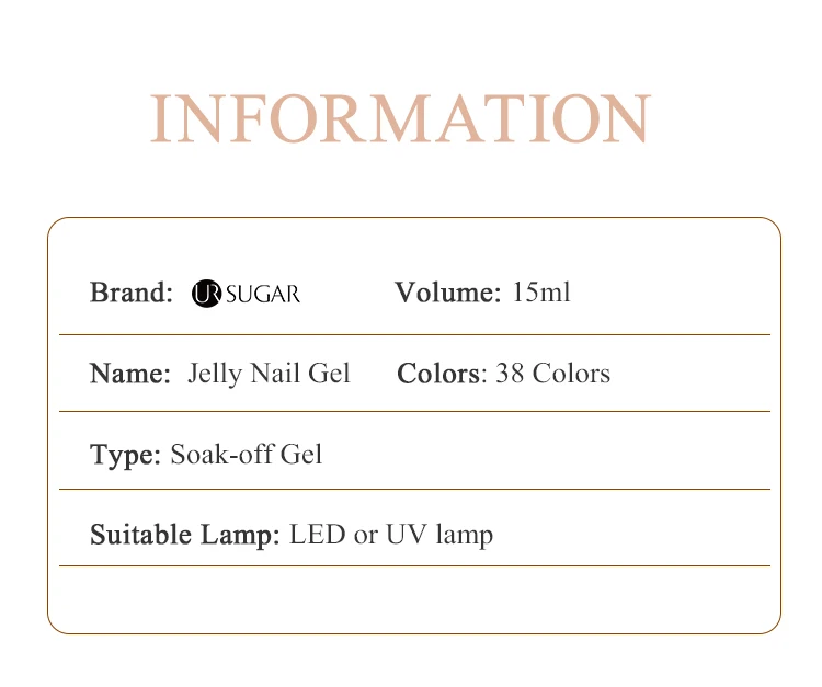 UR SUGAR 15ml Jelly Gel Nail Polish Black Red Pink Color Semi Permanent Nail Art Manicure Soak Off LED UV Gel Nail Varnish