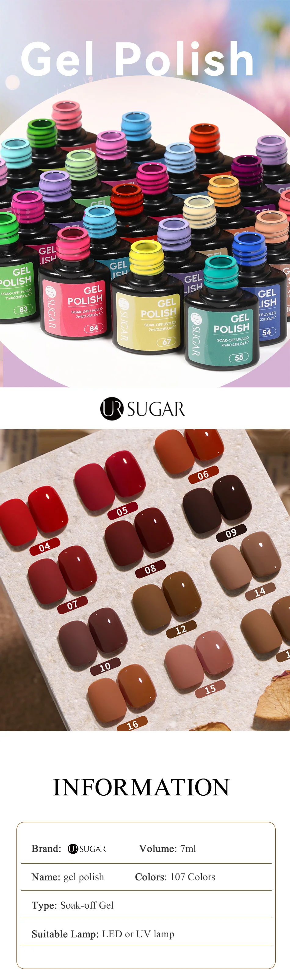 UR SUGAR 7ML Nail Gel Fresh Macaron 107 Colors All For Manicure Semi Permanent Soak Off LED UV Long-Lasting Nail Art Varnish