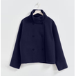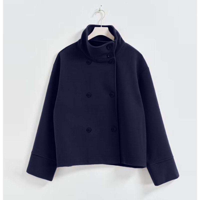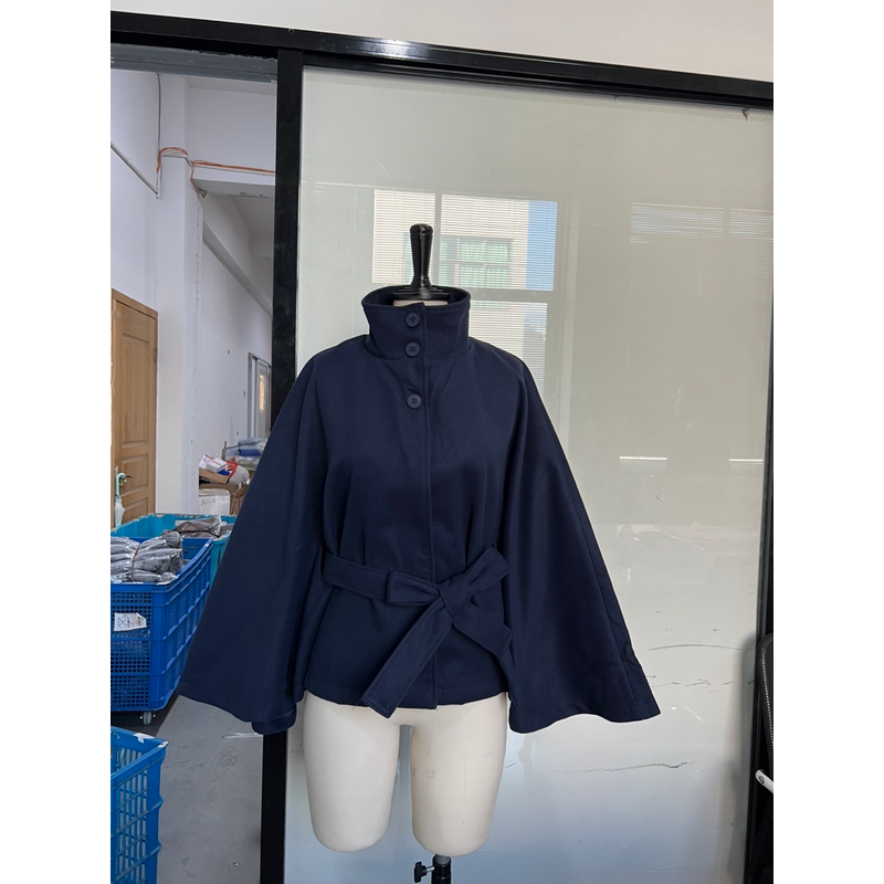Woolen Dark Blue Jacket Women 2025 Spring Single Breasted Stand Collar Loose Female Coat Office Lady Street Short Outwear Tops