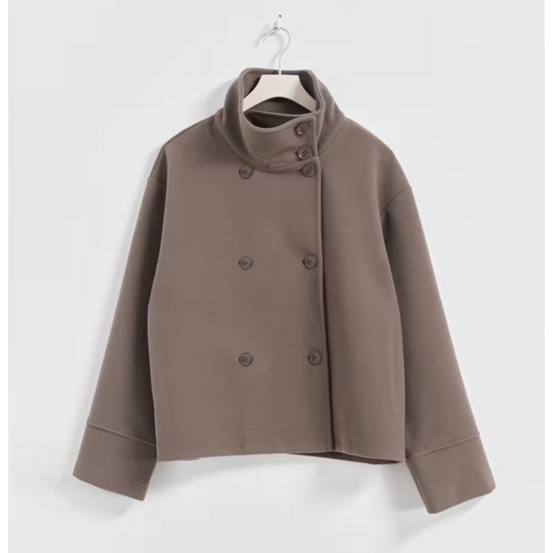 Casual Solid Woolen Coats Women Loose Full Sleeve Single Breasted Stand Collar Short Jackets Female 2025 Autumn Lady Outwears