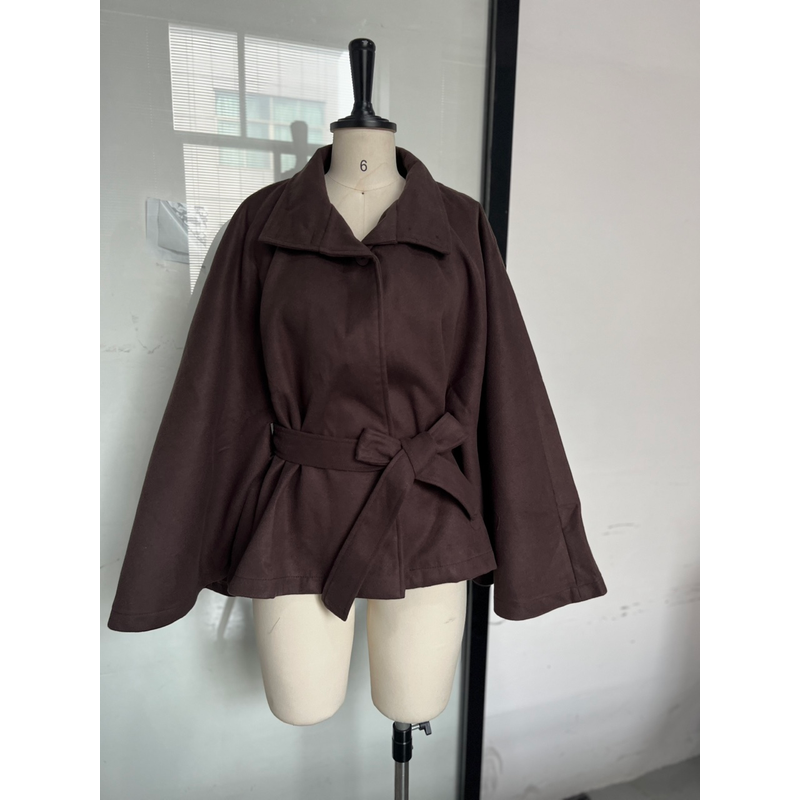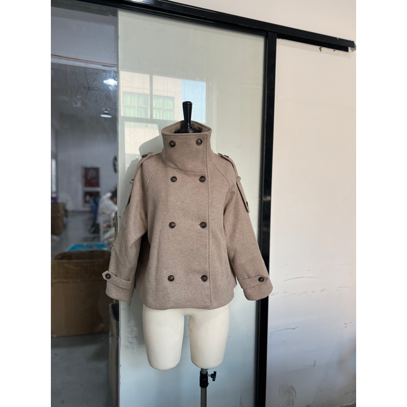 Casual Solid Woolen Coats Women Loose Full Sleeve Single Breasted Stand Collar Short Jackets Female 2025 Autumn Lady Outwears