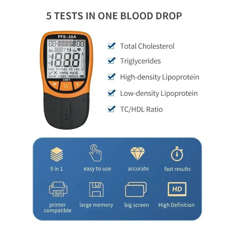 UriT PFS30 Lipid Analyzer 5 IN 1 TC/HDL/TG/LDL Blood Lipid Analyzer Automatic Monitoring of Total Zeyasen equipment Store