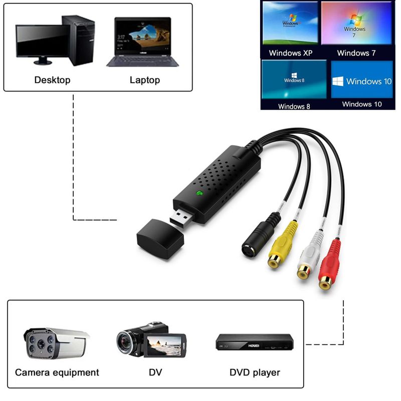 • USB 2.0 Interface :Capture video and audio from your TV or DVD player with ease using the USB 2.0 interface.