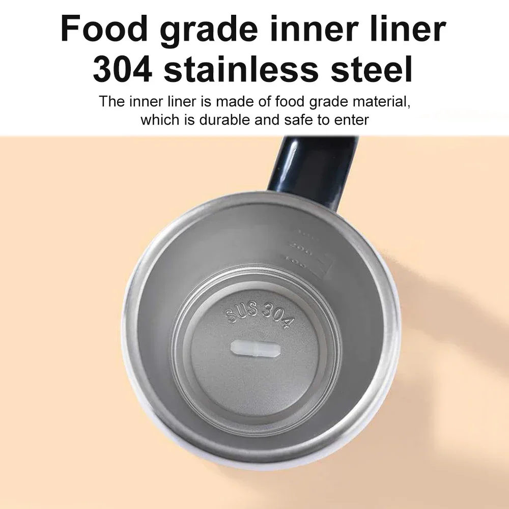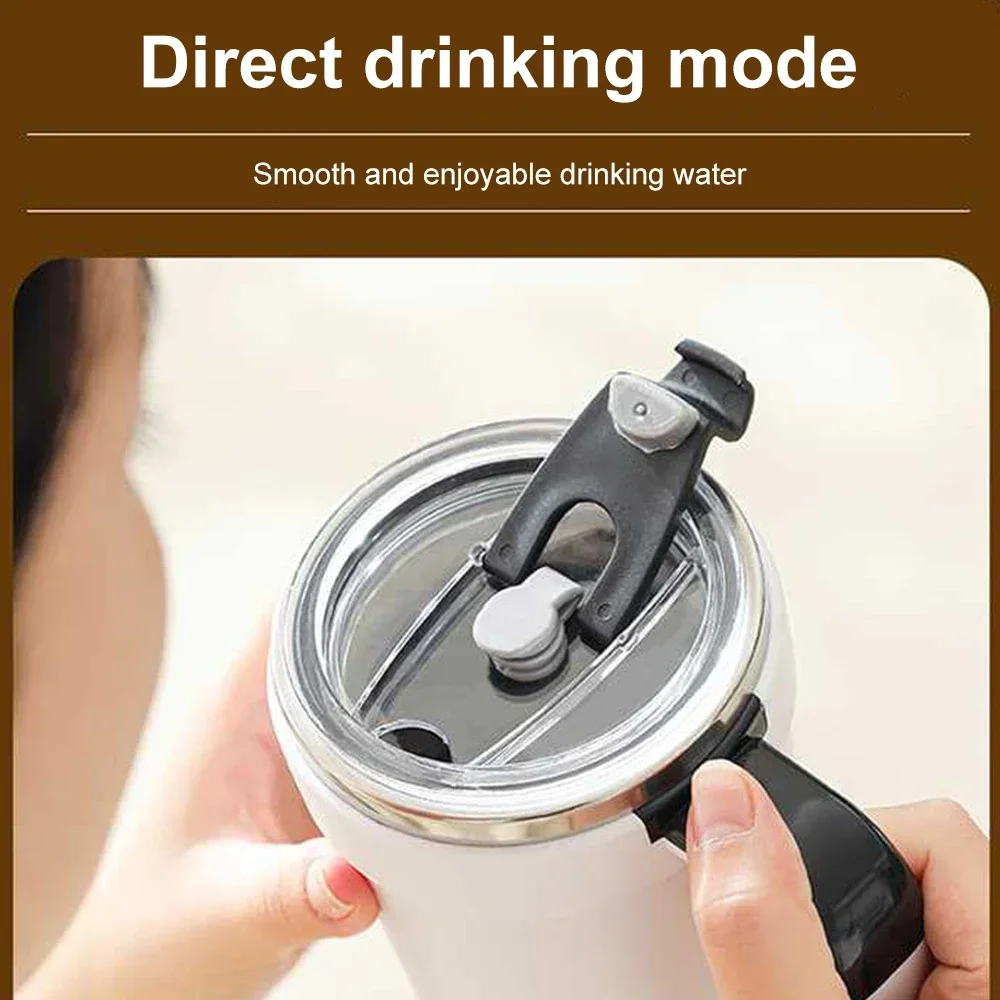 1.A perfectly crafted mug, suitable for drinking morning tea while traveling. Specially designed for working outside. A sturdy lid can minimize spillage even when the mixing function is turned on. Keep the bottom cover tightly closed for optimal results. Very suitable for coffee, tea, hot chocolate, milk, protein milkshakes, lemonade, and many other light mixed drinks that can be stirred.