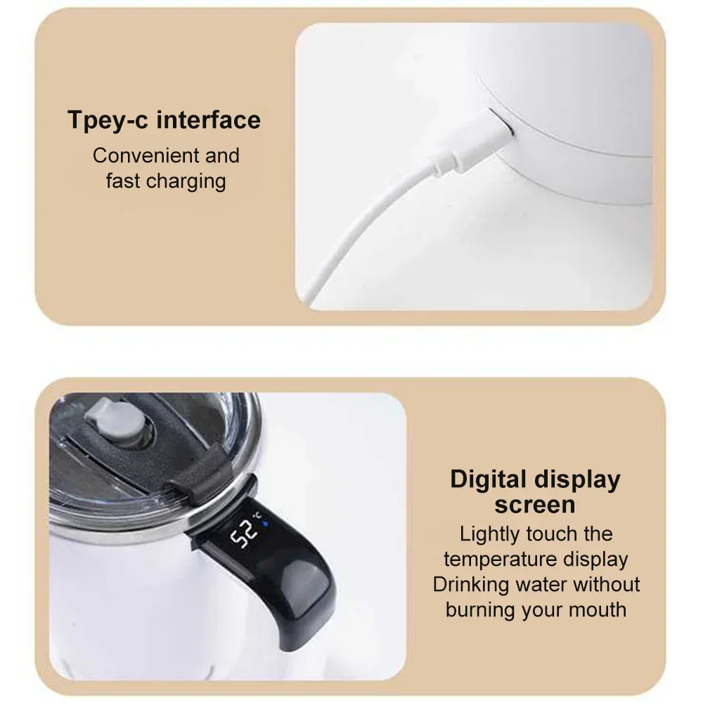 2. Simply connect the insulated cup to any USB port using the included USB cable. With a 150mA battery capacity and Type-C fast charging, it can be used for about 60 minutes on a single charge, making it easy to use.