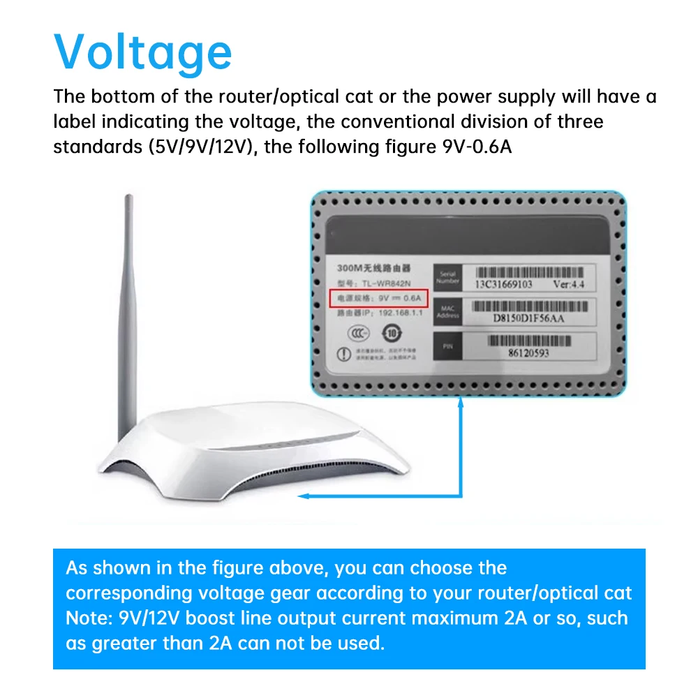 The current output of the 9V/12V boost line is within 1A. If the current of your router/optical modem is greater than 1A, it cannot be used