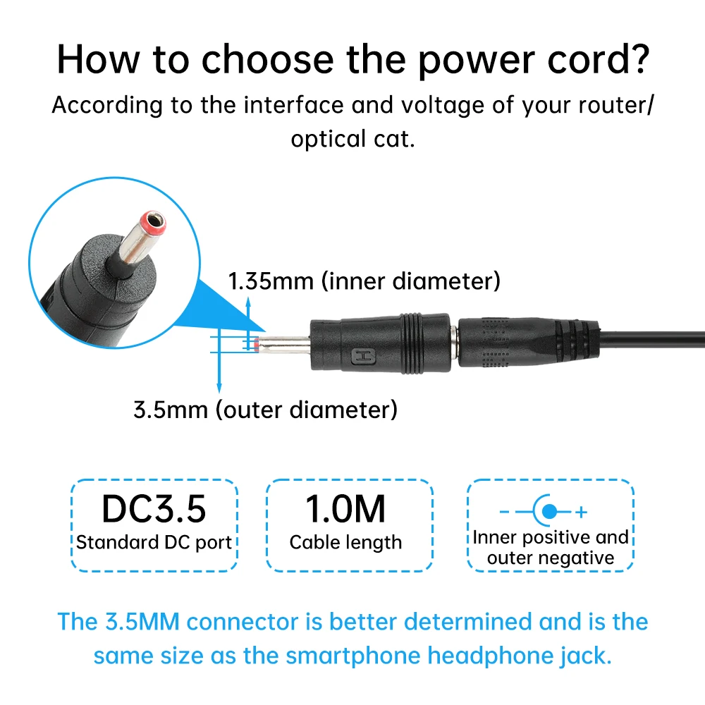DC3.5mm interface specifications: outer diameter 3.5mm, inner diameter 1.35mm
