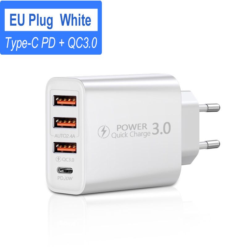 USB C Charger 60W Fast Charge Charger 4Ports PD TypeC Quick Charge3.0 Wall Power Adapter for iphone Xiaomi Samsung Phone Charger