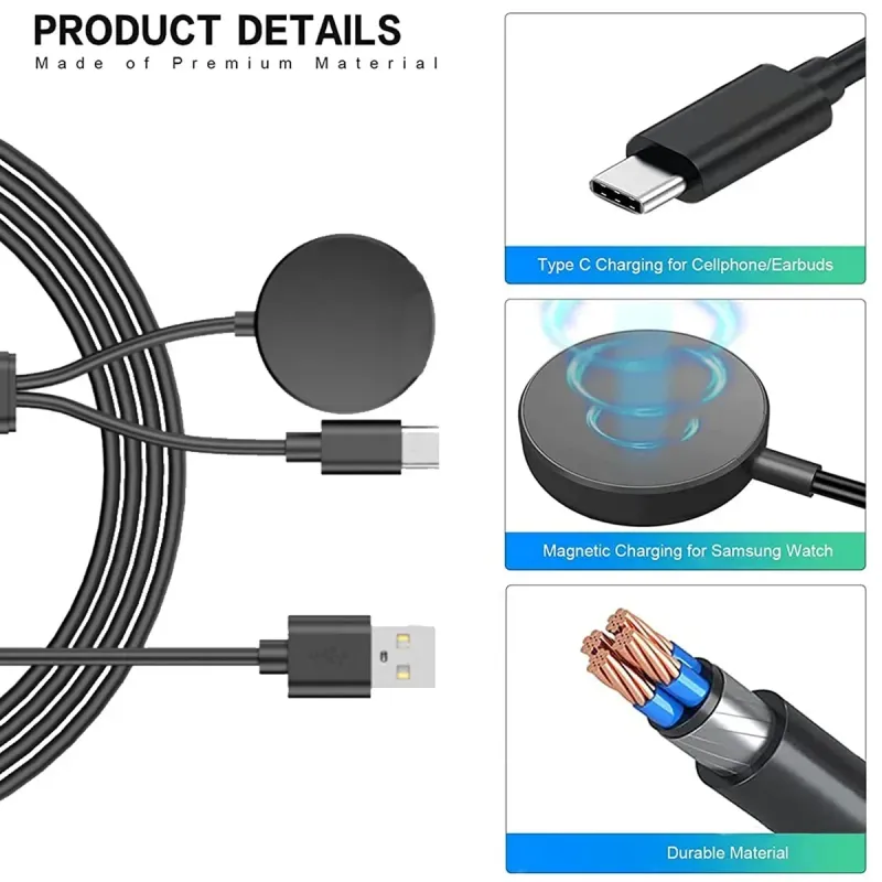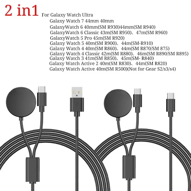 USB C Charger for Samsung Galaxy Watch 2 in 1 Type C USB A Cable 3.94 fit for Galaxy Watch6/5/4 Watch 5 Pro Galaxy S23 Ultra