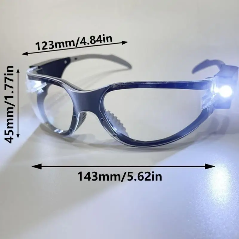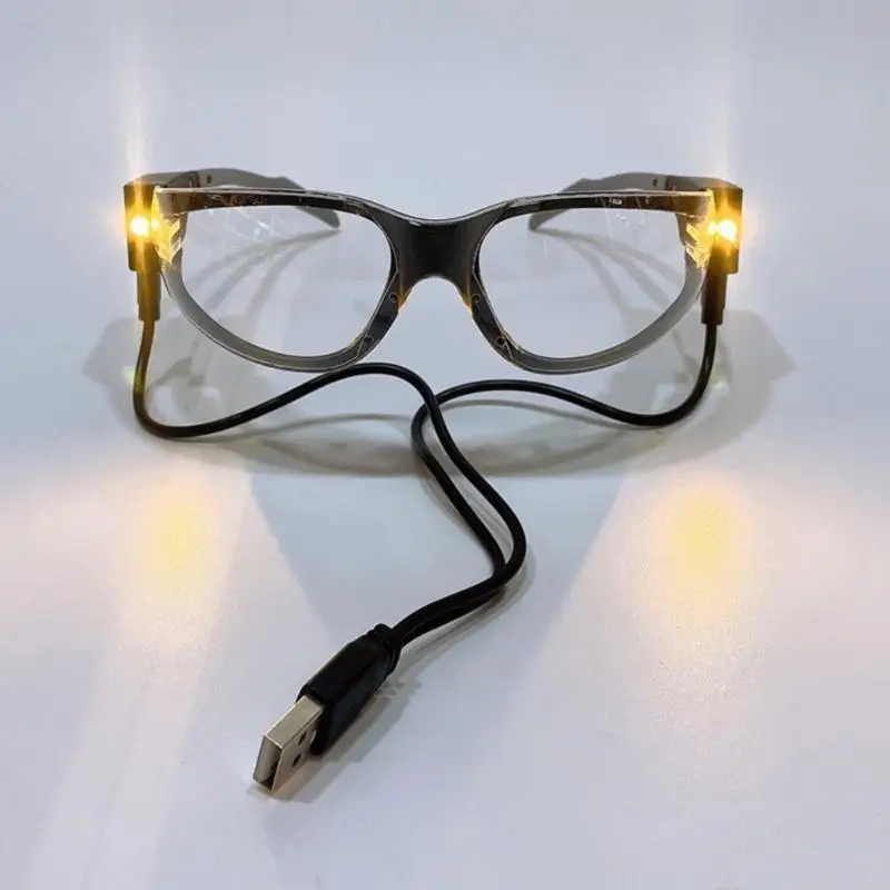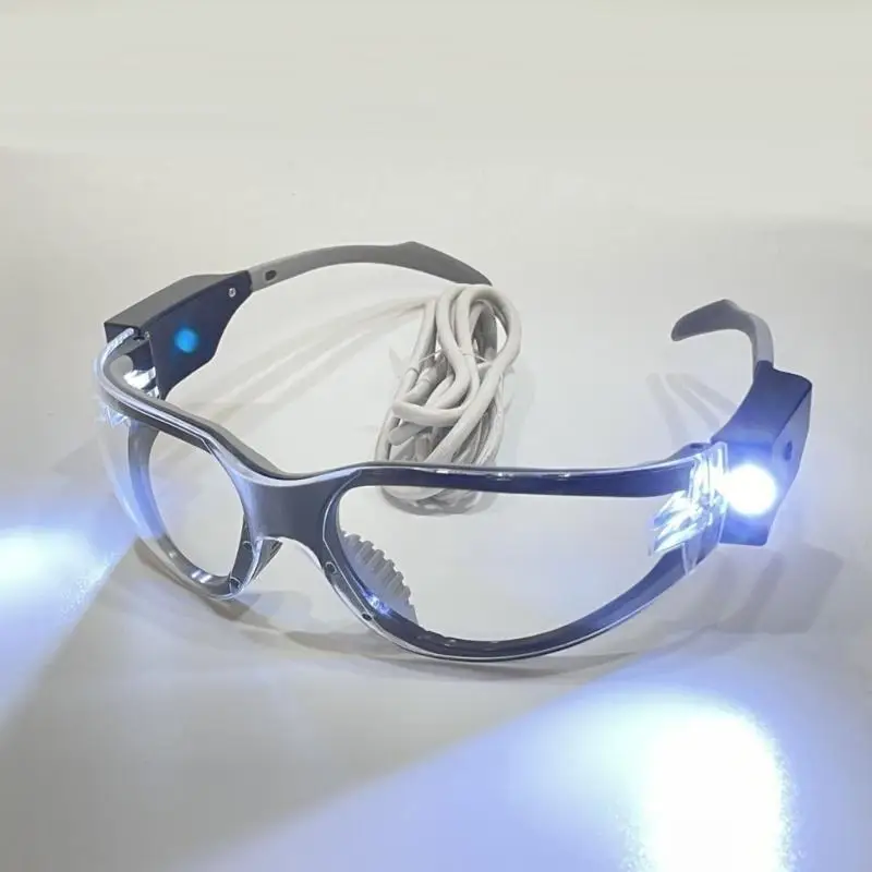 USB Charging LED Safety Glasses double Beam PC Lens Safety Eyewear Comfortable Nose Pad Unisex Design for Dark Areas