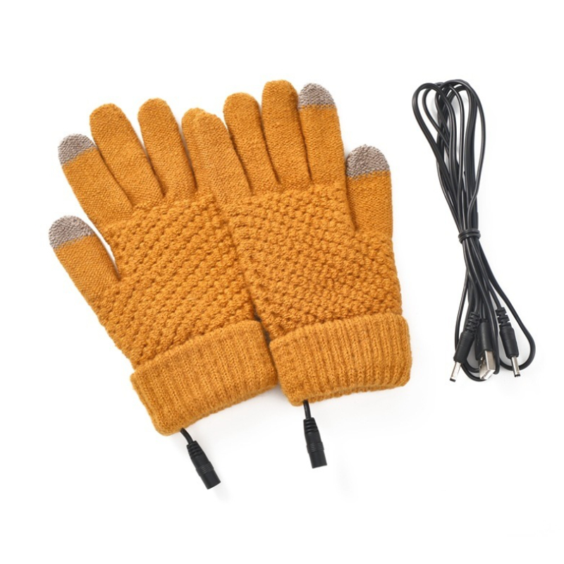 USB Heating Electric Heating Gloves Thermal Thickened Knitting Yellow V2 Free Size