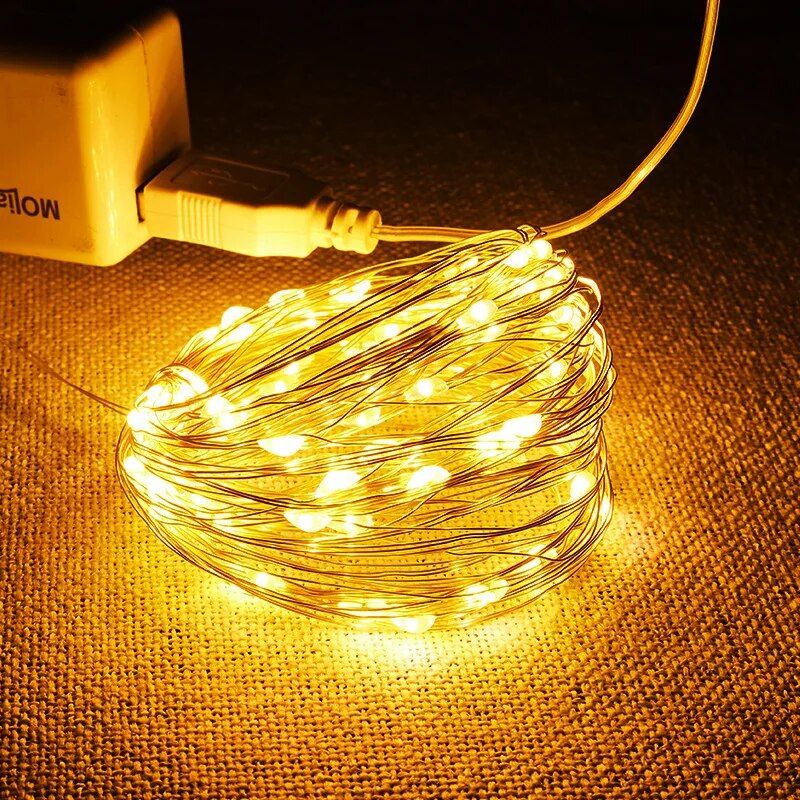USB LED String Lights 5M Silver Wire Garland Light Waterproof Fairy Lights For Christmas Wedding Holiday Party Decoration