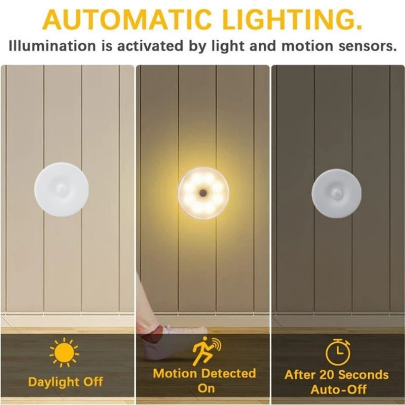 1. Motion sensor light Indoor Rechargeable will turn on automatically when you come close within 3-5M and automatically turns off 20 seconds after motion stops. Ideal for hallways, Closet Rooms, stairways, basements and many more commercial or residential applications. Get your life more convenient!