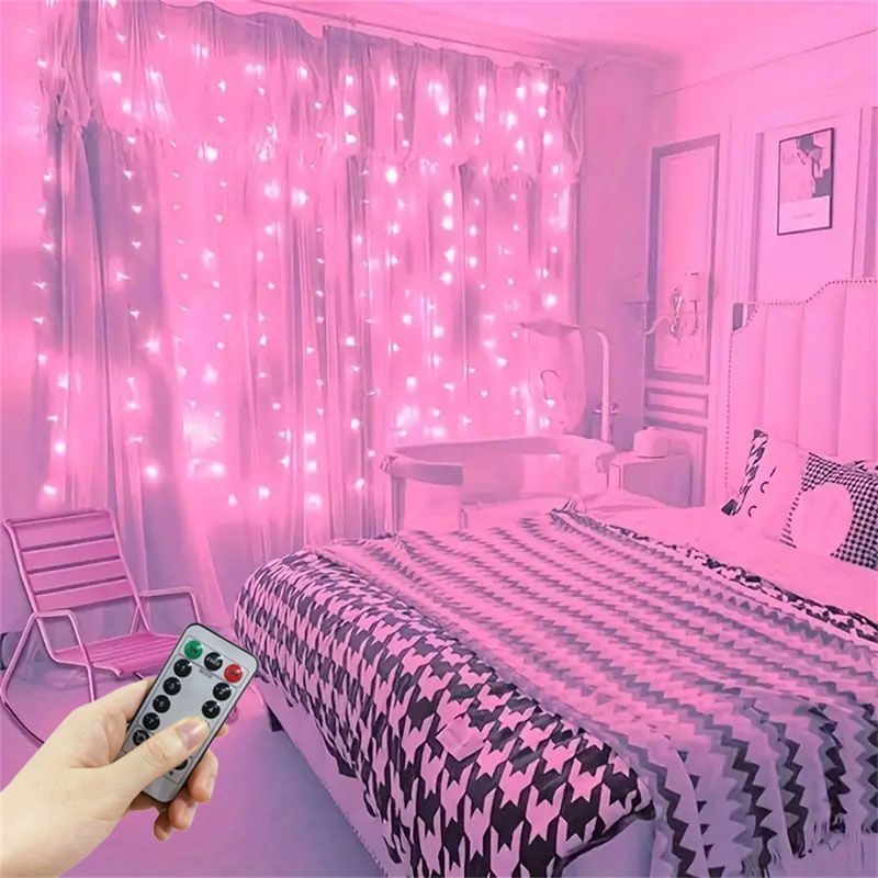 USB Plug Wedding Garland Valentine's Day Ramadan EID Mubarak Decoration for Home Curtain Lights 8 Modes LED Curtain Fairy Light