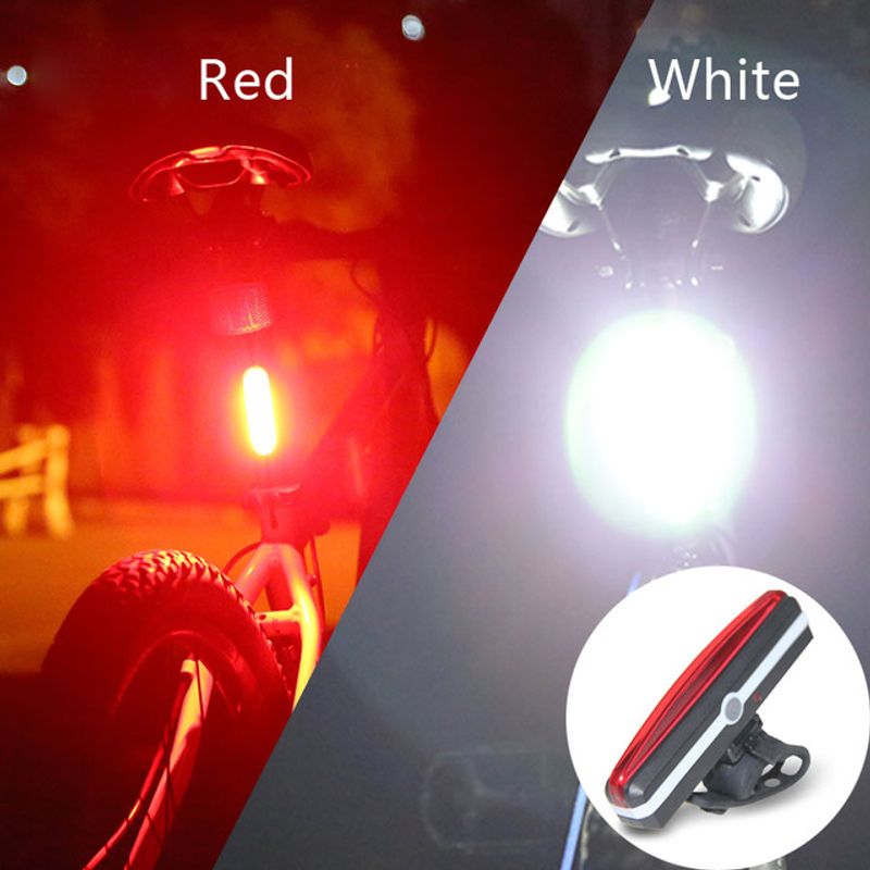 USB Rechargeable Bicycle Riding COB Tail Light Mountain Bike Bicycle LED Safety Warning Light Flashing Rear Light White Usb
