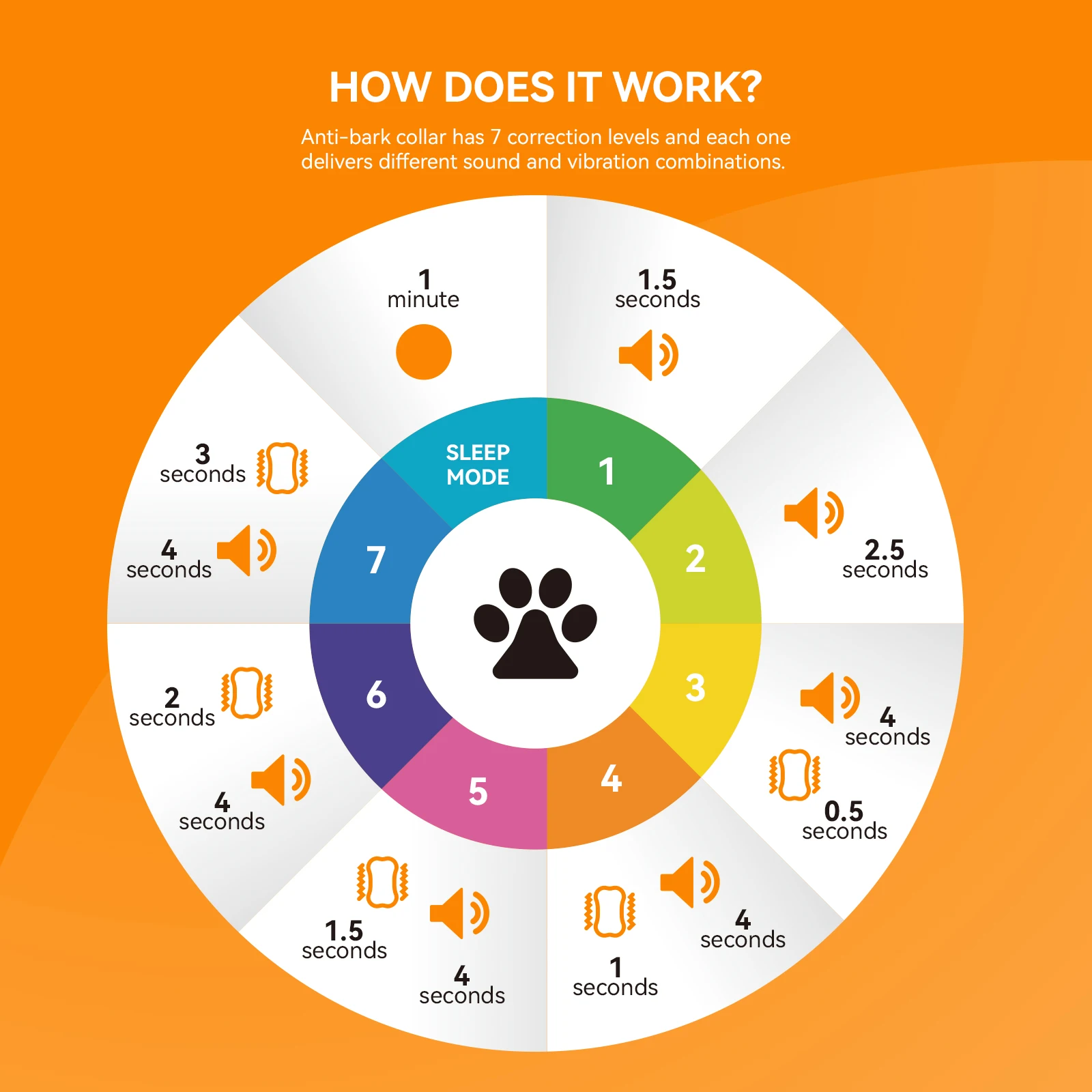 This Dog Bark Collar is an excellent trainer that can be used for a long time. Its wide applicability ensures that it can be used for different dog breeds. The collar is designed to reduce discomfort and prevent harm to your dog, making it a humane way to train your dog not to bark excessively. Give your furry friend a comfortable training experience with this bark collar. No shock function, only sound+vibration.