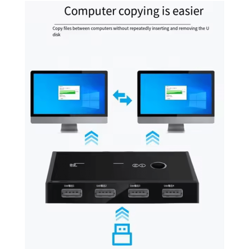 2×4 Port Configuration: two host inputs, four device outputs—share multiple peripherals between two computers