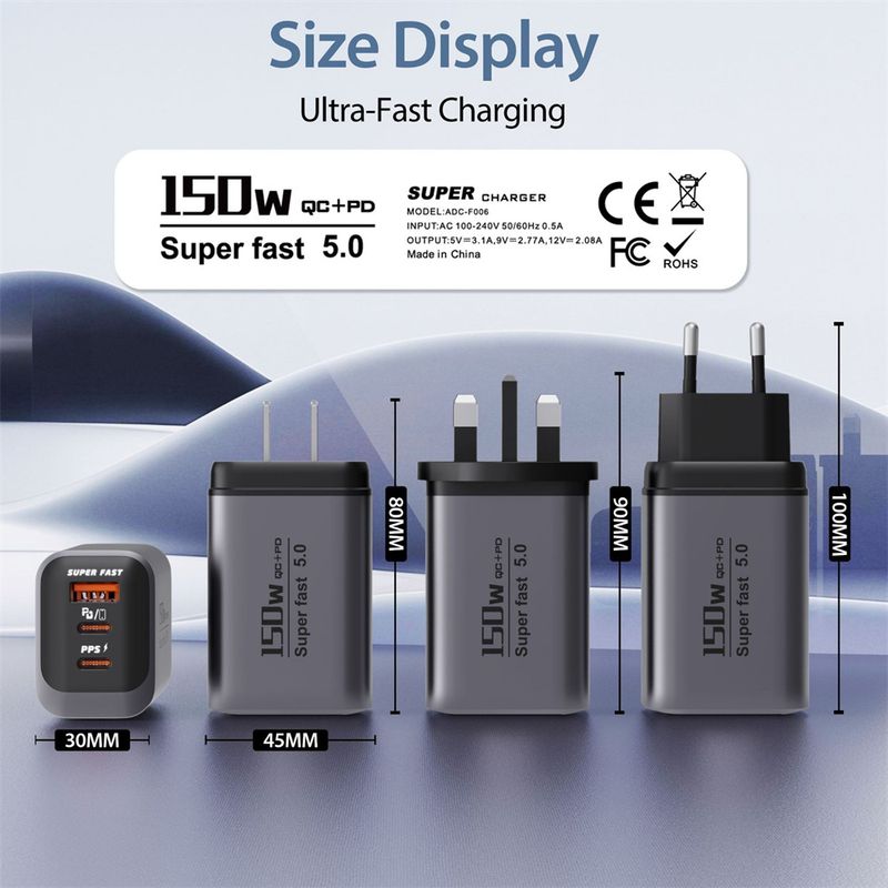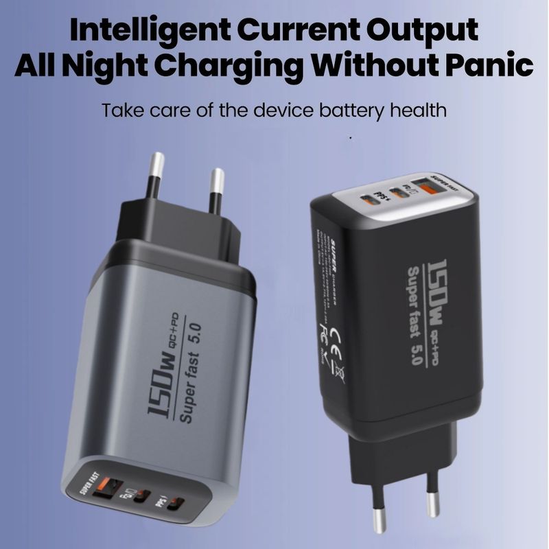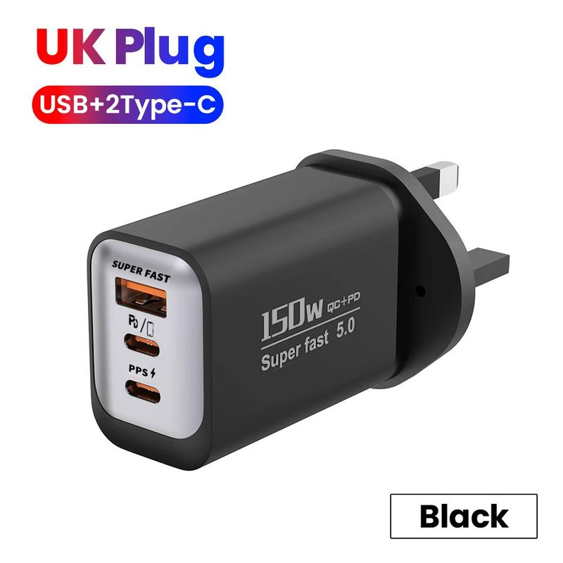 USB Type C 150W Charger USB QC3.0 Fast Charging Mobile Phone Charger Travel Adapter For iPhone 17 Samsung Xiaomi EU/UK/US PlugĀ