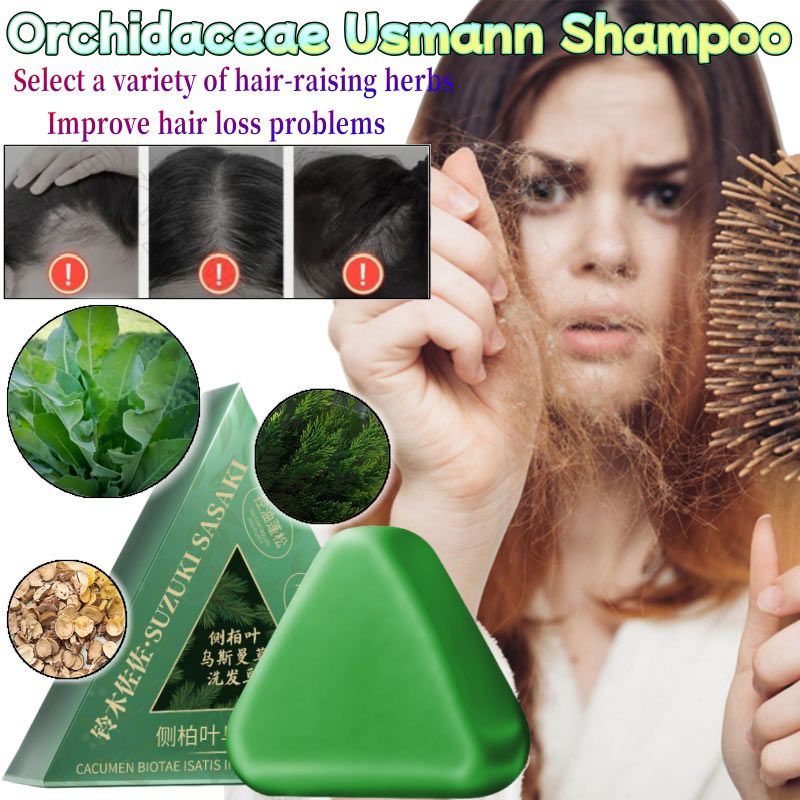 Usman Grass & Platycladus Herbal Shampoo Soap Natural Hair Loss Treat Strengthens Roots Controls Oil Cleanses Scalp Hair Growth