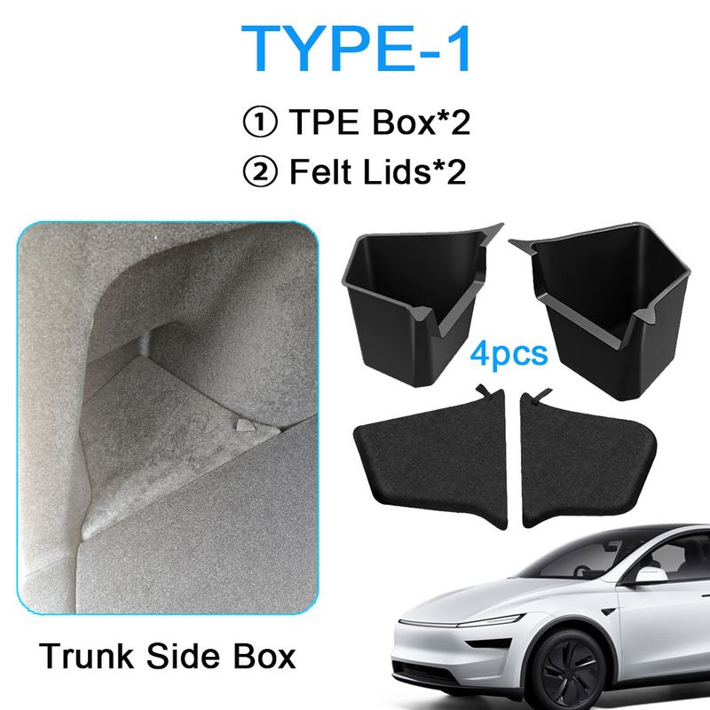 USVOTOV Trunk Organizer for Tesla Model Y Juniper Launch Refresh 2025 Rear Trunk Storage Bins Side Box Organiser TPE Accessories
