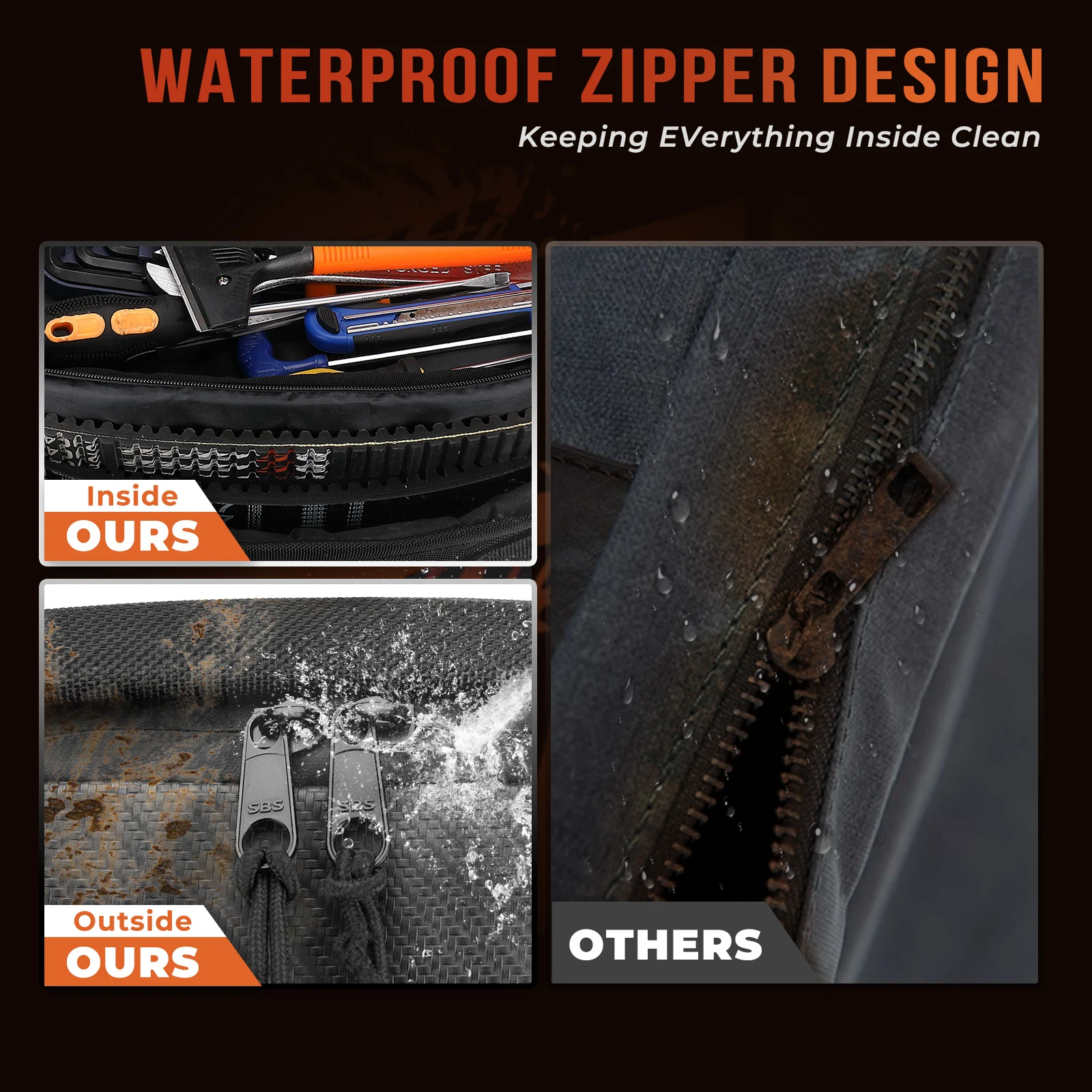 UTV Tools Bag is especially designed as a Closure out of the water-resistant zipper, keeping clutch belts and tools inside dry and clean.