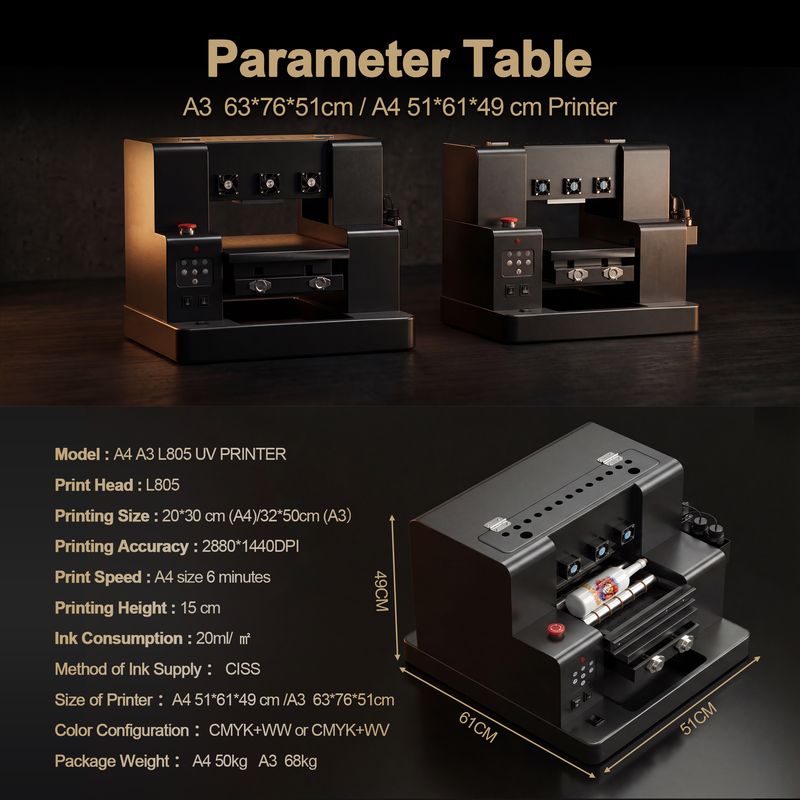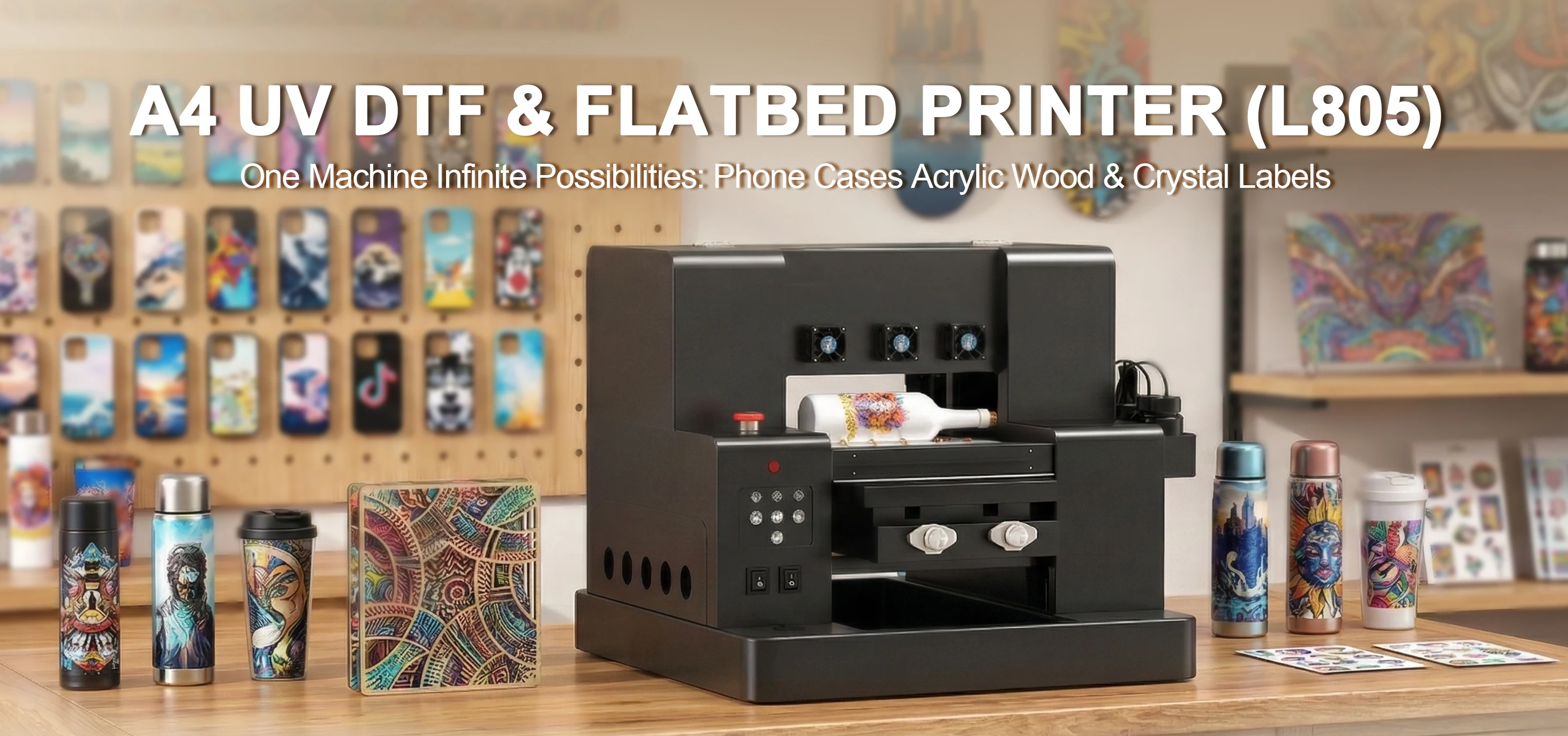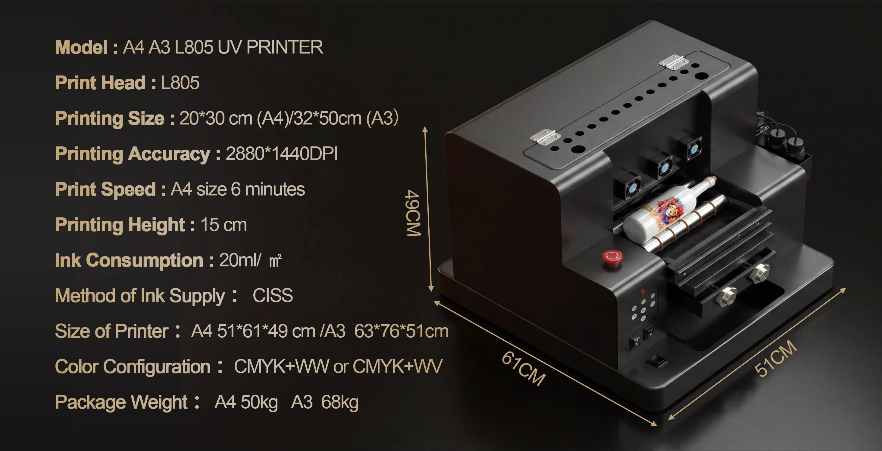UV Printer for Epson L805 A4/A3 UV Flatbed Printer with Varnish UV DTF Sticker Printer for Phone Case Bottle Golf Pen Acrylic