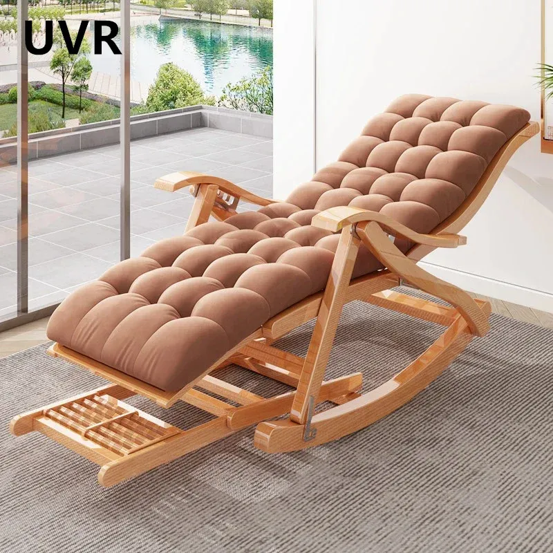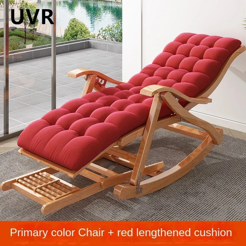 UVR Adult Recliner Folding Rocking Chair Living Room Armchair Bed Office Lunch Break Nap Backrest Stool Bamboo Chaise Longue