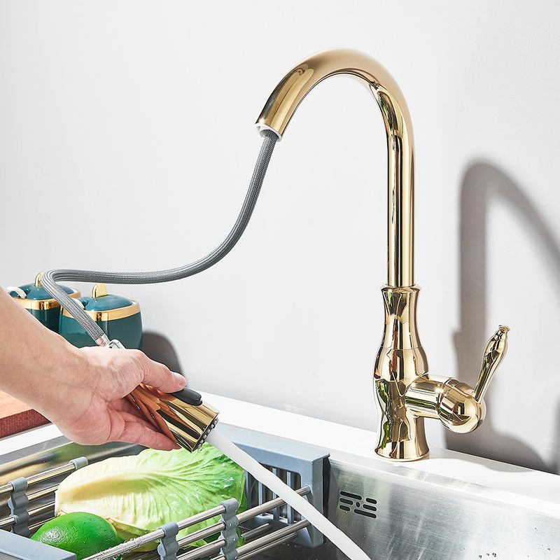 Uythner Gold Polish Swivel Spout Kitchen Sink Faucet Pull Down Sprayer Fashion Design Bathroom Kitchen Hot&Cold Water Mixer Tap
