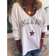 V-neck Letter Print Long-sleeved T-shirt White 2XL