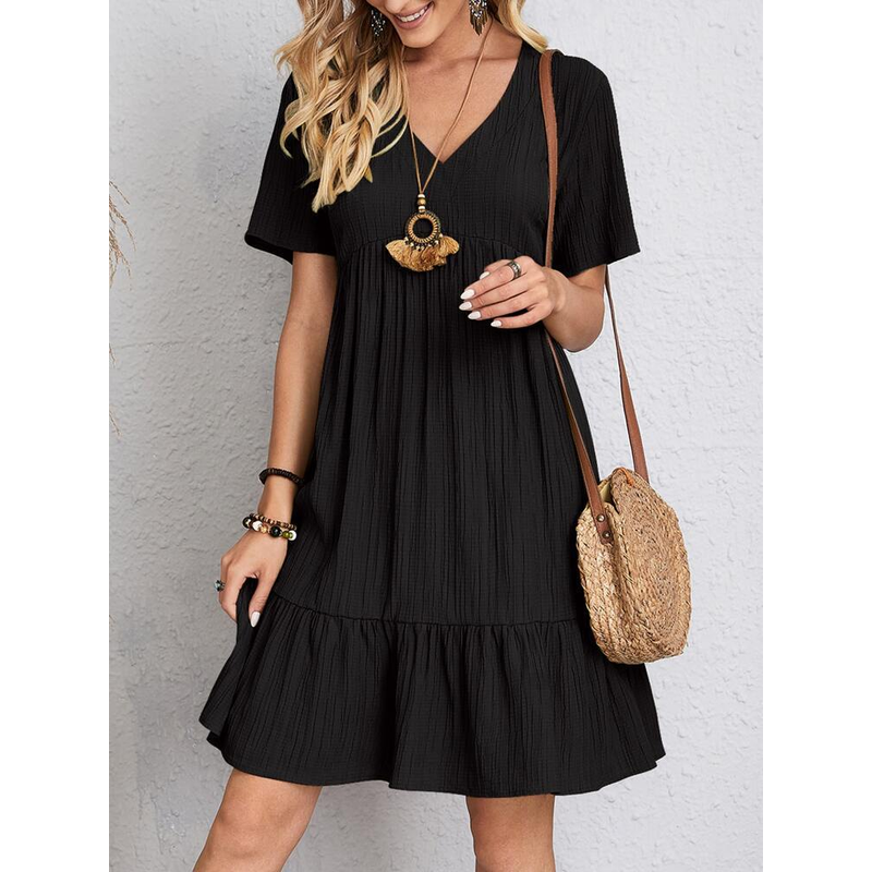 V-neck Short Sleeve Dress Summer Fashion Casual Loose Ruffled Dresses Beach Clothing Women Green S