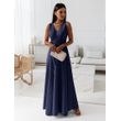 V-neck Sleeveless Dress With Belt Summer Fashion Party Club Evening Maxi Dresses For Women Clothing Navy Blue XL